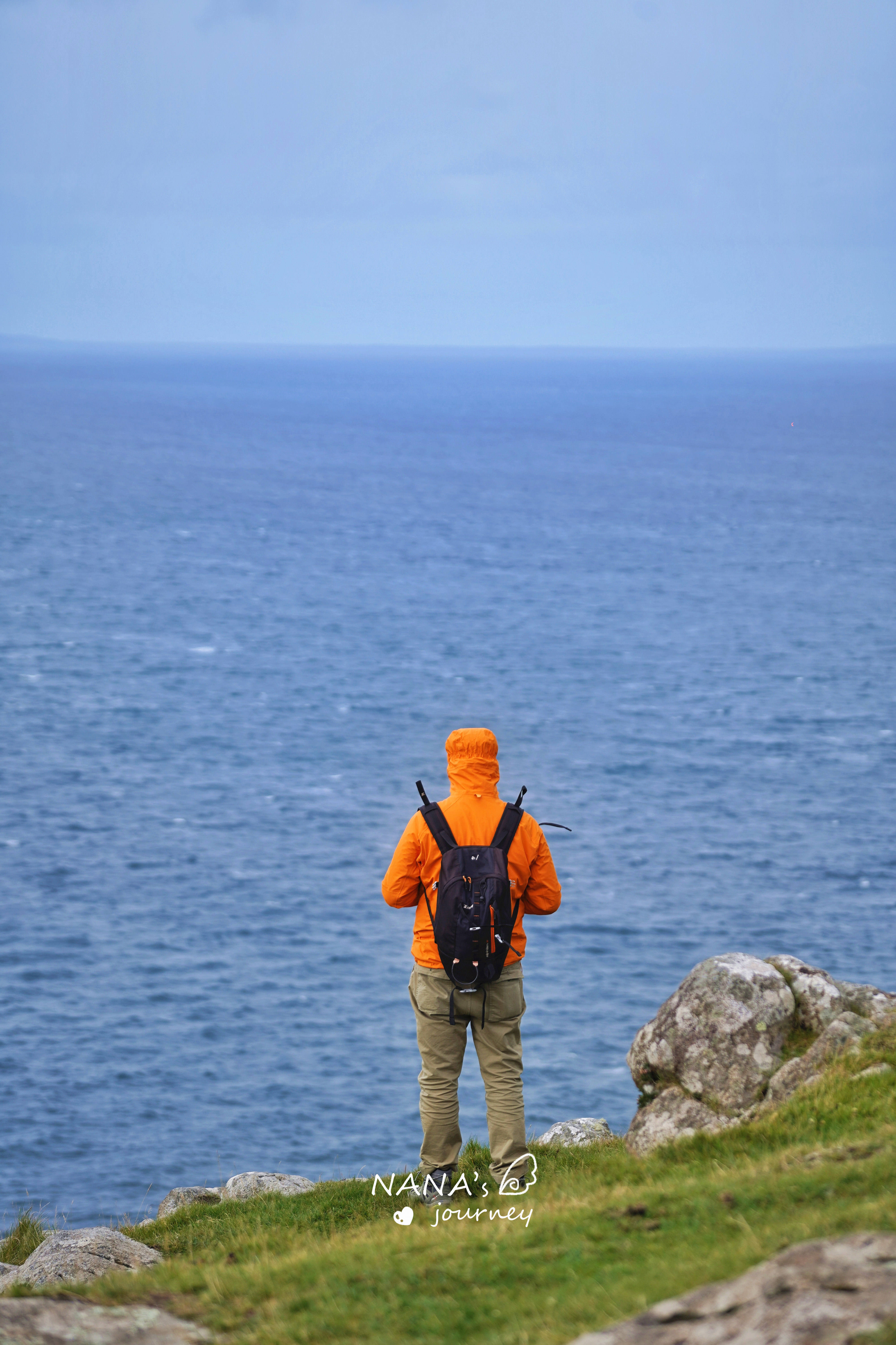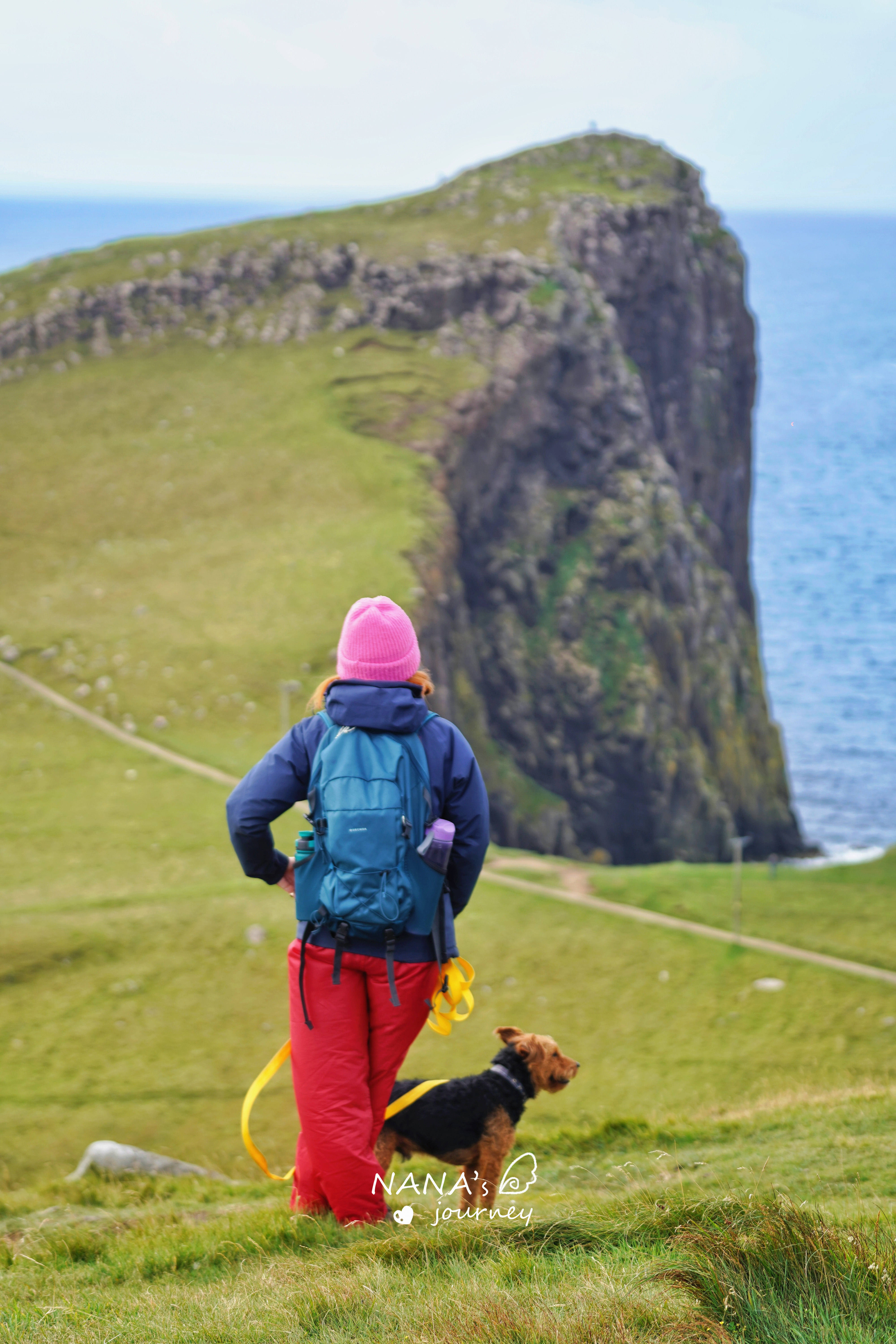 天气倒是从乌云开始放晴了,阳光洒在海面幻化出了各种色泽的蓝,波光粼粼,美是真美,悬崖上风也是真的大,有种要被刮走的节奏。