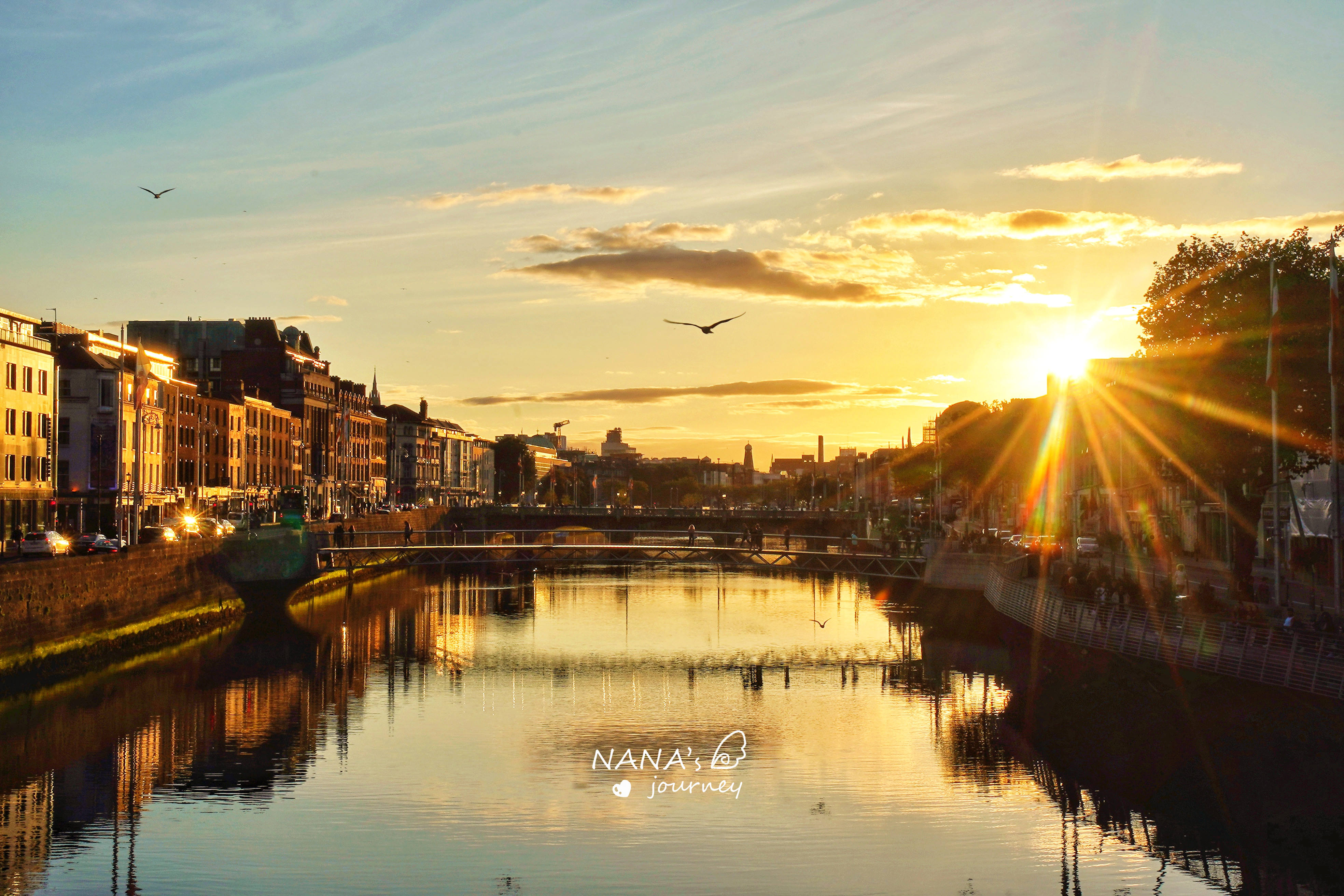 在桥上欣赏都柏林的落日,真的是非常浪漫,我们驻足看了很久,看着海鸥纷飞觅食,是活力是生机。这一天也是全爱尔兰天气最好的一天了。