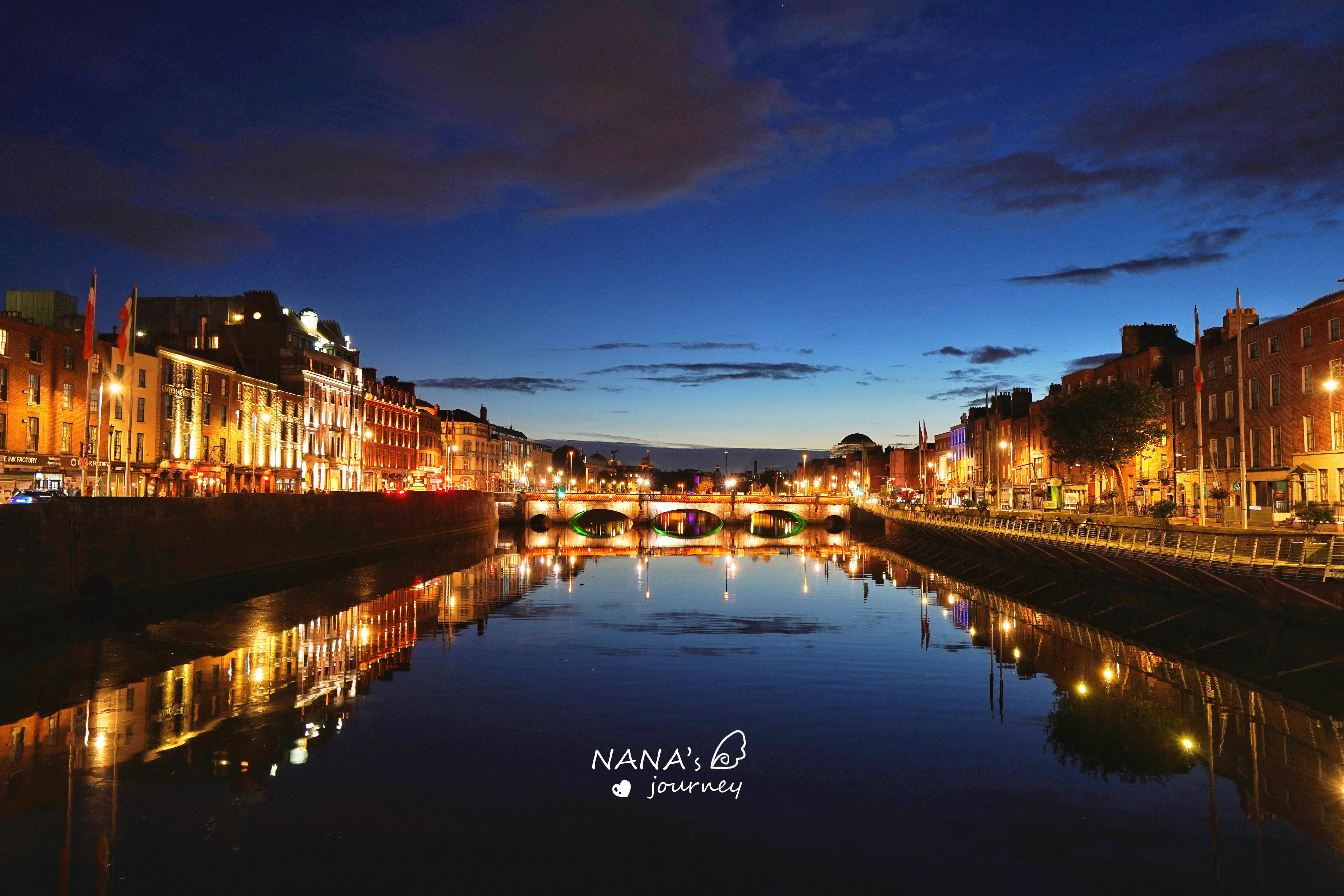 一直在桥上等到了蓝调,华灯初上的都柏林又是另一种情调,让人着迷。