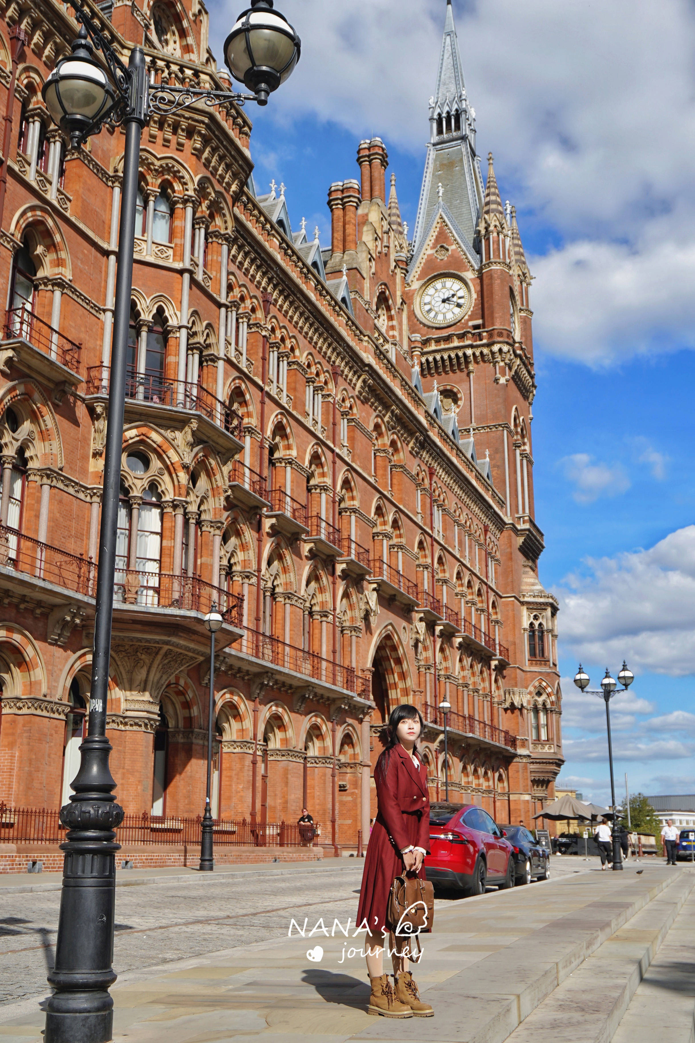 国王十字火车站旁的好看的建筑就是St Pancras International车站,红色亮眼的维多利亚风格建筑,非常的吸引目光。这个车站是欧洲之星国际高铁的站,这里是通往欧洲的开端。
