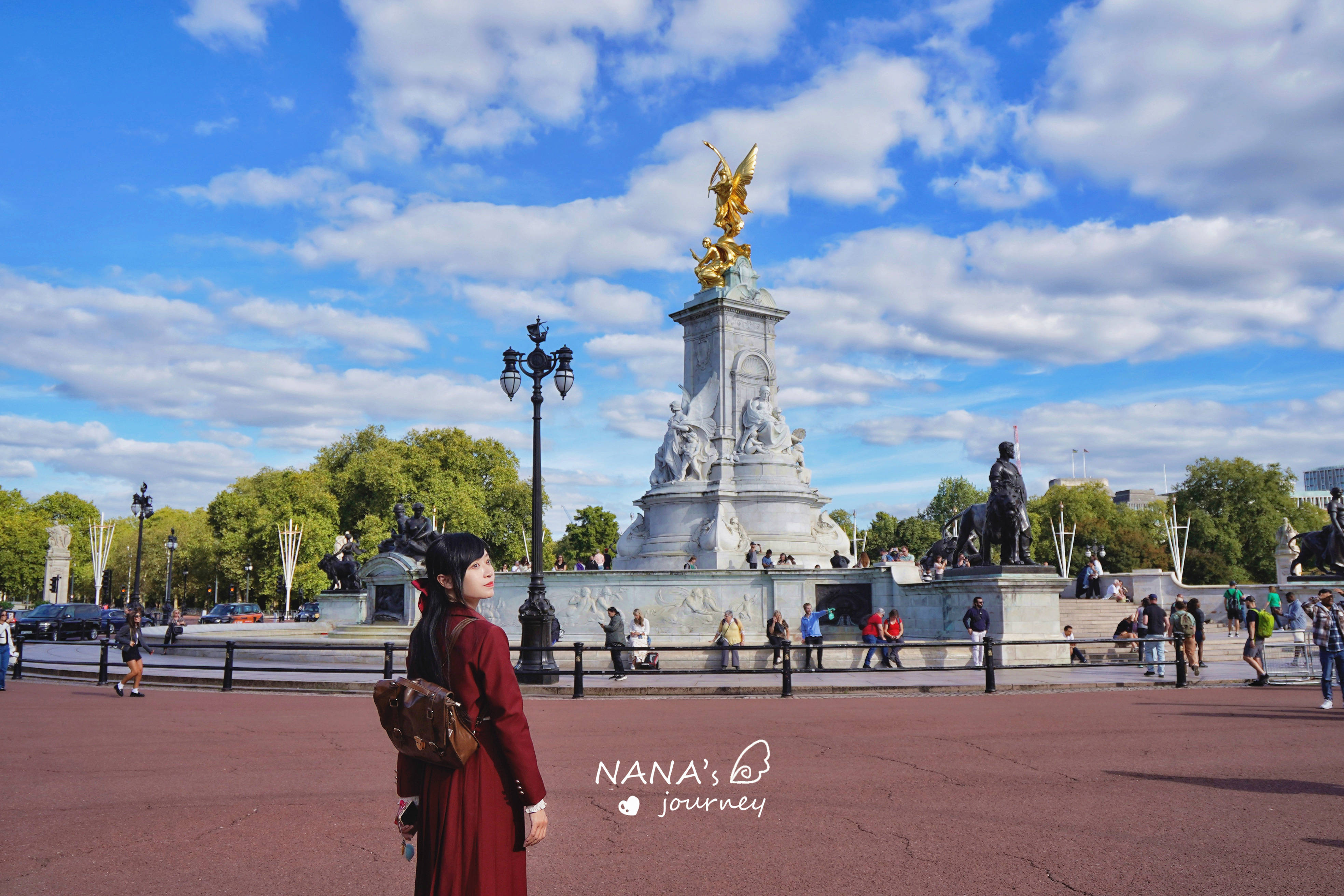 走十来分钟就能到白金汉宫的正门口了,我们没来看换岗,就看一眼英国皇室居住地就够了,这里真的是游客如织,全挤在白金汉宫门口拍照。