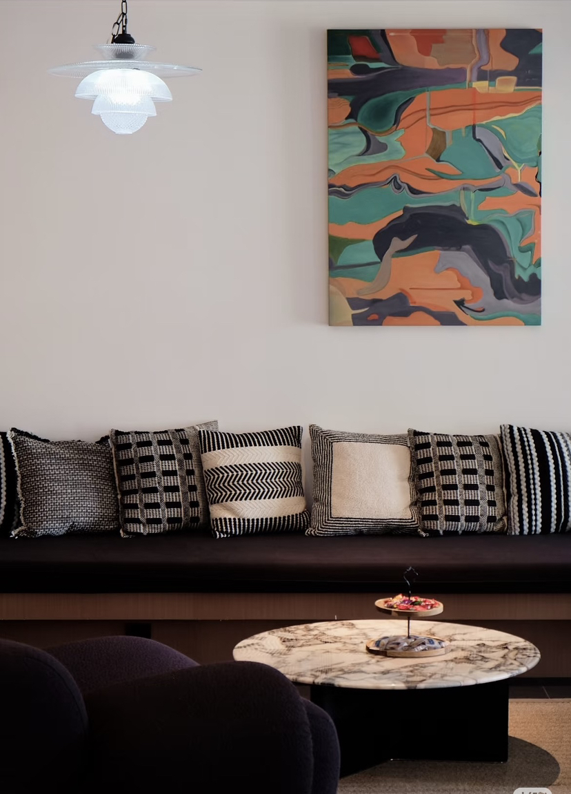 从前院到大厅,标志性的圆形拱门、罗马石柱配上乳白色系搭配,代入感极强恍惚间真有身处欧洲