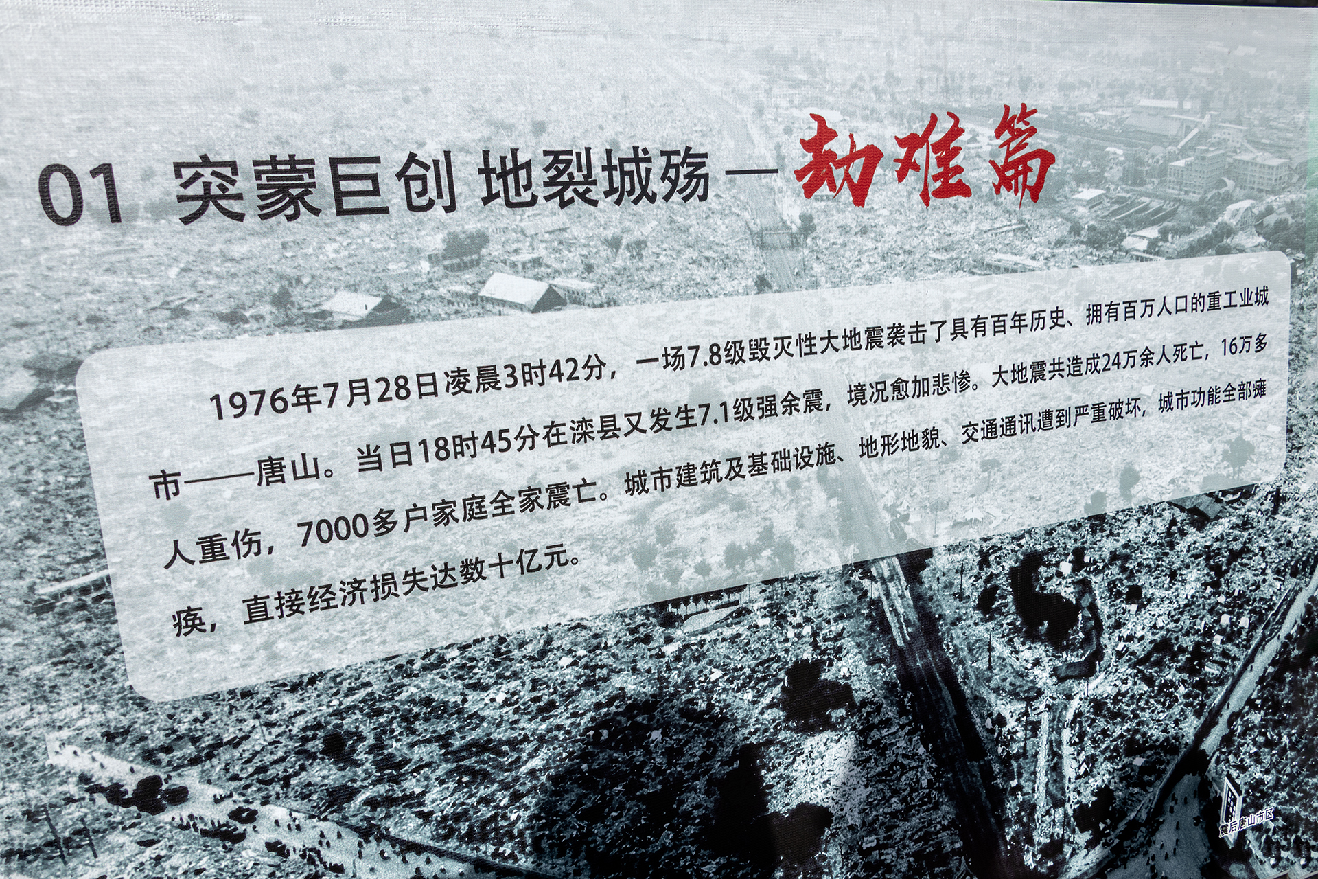 唐山地震遗址纪念馆,走进遗址首先映入眼帘的是一排高高的纪念墙矗立在遗址的入口处,显得庄严肃穆,墙体上用楷体刻着24万遇难者的名字,他们的生命永远停留在了统一时刻。