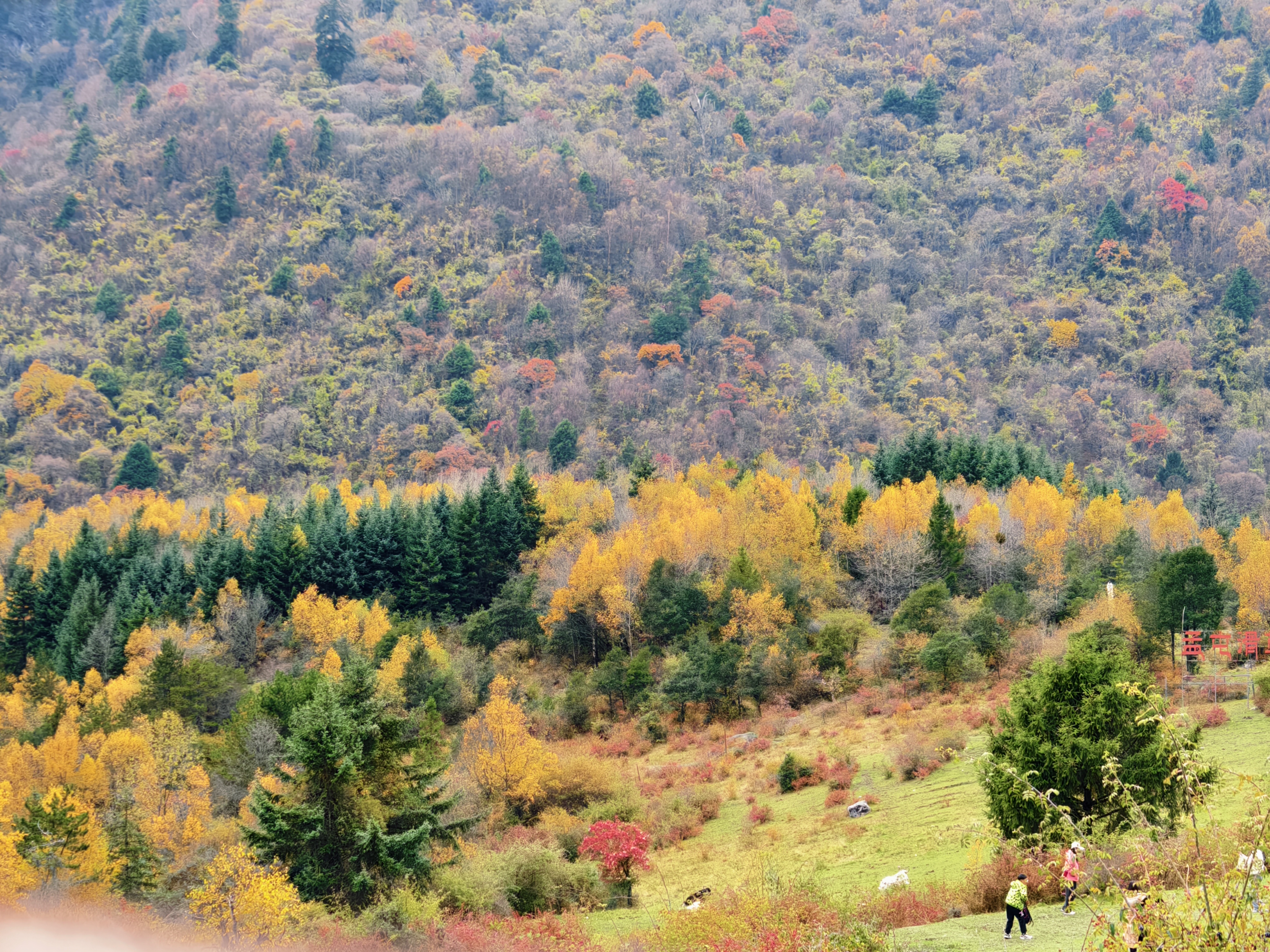 老君沟的彩林在午后阳光下愈发绚烂,雪山如戴银冠的巨人伫立天边。在甘堡藏寨的最后午餐,我们品尝着地道的藏式美食,回味这两天的点点滴滴。下午三点,返程的车轮启动,孩子们抱着相框标本和兔子灯沉沉睡去,他们的行囊里,不仅装着落叶与松果,更装着一整个孟屯河谷的秋天。