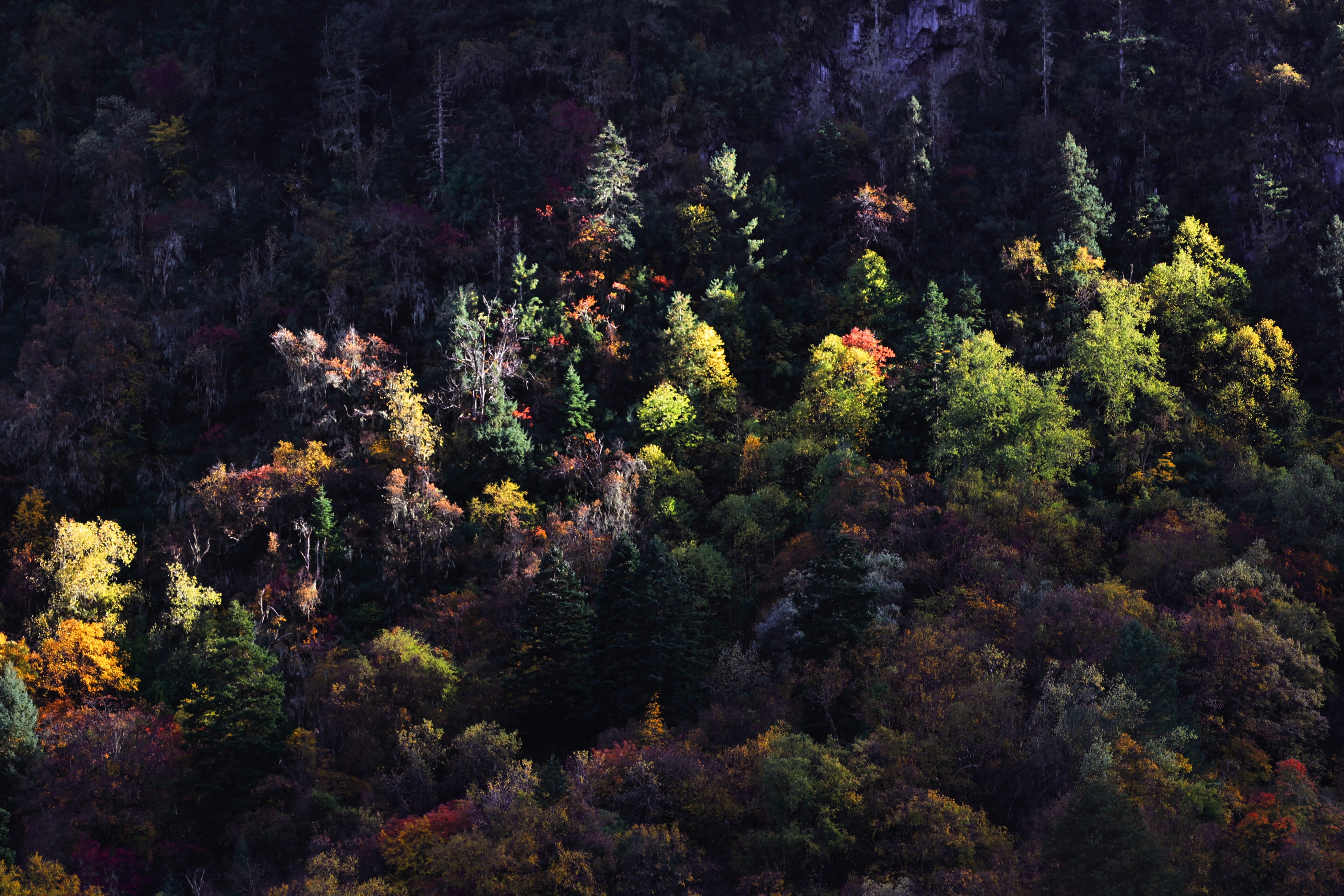 进村的路选了经典的尼农线,15公里的徒步道藏在悬崖与河谷之间,爬升的海拔让呼吸渐渐沉重,却被沿途的风景悄悄治愈。脚下的石板路被岁月磨得温润,两旁的原始森林遮天蔽日,阳光穿透枝叶织就金色光柱,溪流潺潺伴着鸟鸣,偶尔撞见挂着经幡的木桥,风一吹,祈福的纹路便在风中轻轻舒展。行至中途尼龙峡谷补给站,喝一口温热的酥油茶,咸香醇厚的滋味顺着喉咙滑下,瞬间驱散了徒步的疲惫——这是藏地独有的温柔,也是雨崩给旅人的第一份馈赠。
