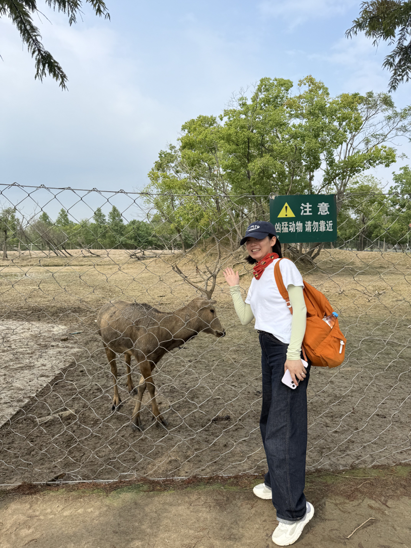 下午,我们去了中华麋鹿园,这里能更近距离地看到它们。我们坐上观光车,开进了没有围栏的保护区,麋鹿就在车子旁边走来走去,我们可以亲手喂它们吃东西,看着它们温顺的大眼睛,感觉特别神奇。导游叔叔还告诉我们,这些麋鹿曾经在中国消失,是从国外“留学”回来的,它们的回家故事真动人。