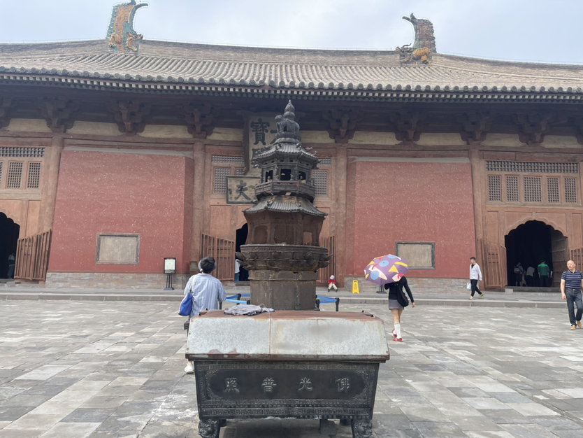 第三日,上午参观五台山的显通寺与罗睺寺,显通寺作为五台山历史最悠久、规模最大的寺院,素有“开山祖寺”的名气。如果说洛阳的白马寺为第一,那么显通寺可称为第二。其大门处还留有当年朝廷为其立下的免征赋税碑文,可见其影响力之大,甚至连普陀山的不肯去观音院都和其有渊源。其看点可谓丰富,可概括为 “一轴七殿、铜铸奇观、文殊道场、文物荟萃” 四大主线。而罗睺寺作为一座喇嘛黄教寺庙,其最大的看点就是“花开见佛”的奇观。信众心诚,佛自从花中现。具体是如何实现的?我们现代人作为无神论者可将其看作一种特殊的机关装置去解释即可。由于这两座寺庙都禁止拍照。所以就无法在游记中把这么美好的场景呈现给大家了。