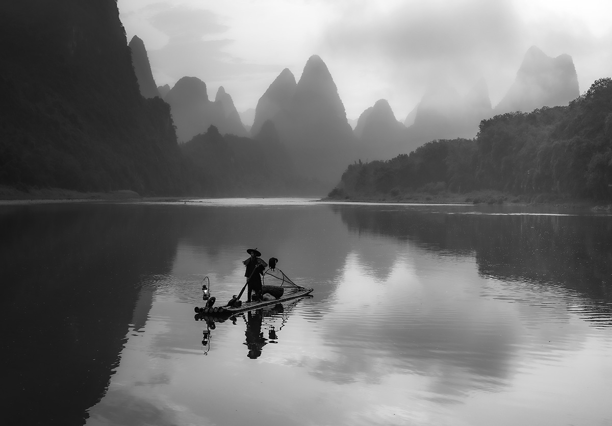 第四天早上拍摄漓江渔火,下午拍摄富里桥和千里江山图日落。
