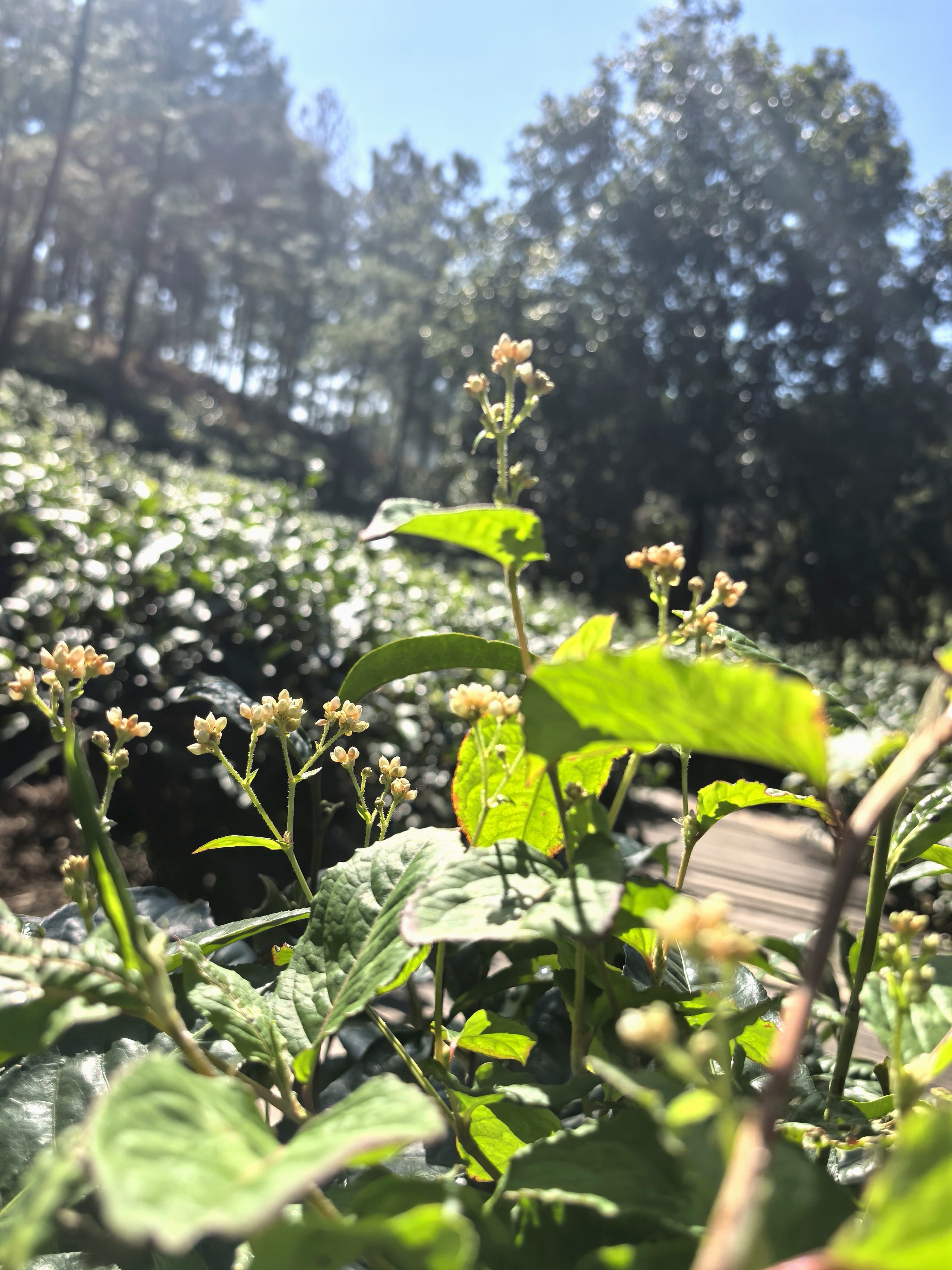 沿着木栈道往上走,风里都是嫩茶的清香气,连阳光都被茶树滤得软乎乎的。爬到山腰一抬眼,居然撞见茶田边嵌着个蓝盈盈的泳池,山野里的“反差萌”直接把氛围感拉满~