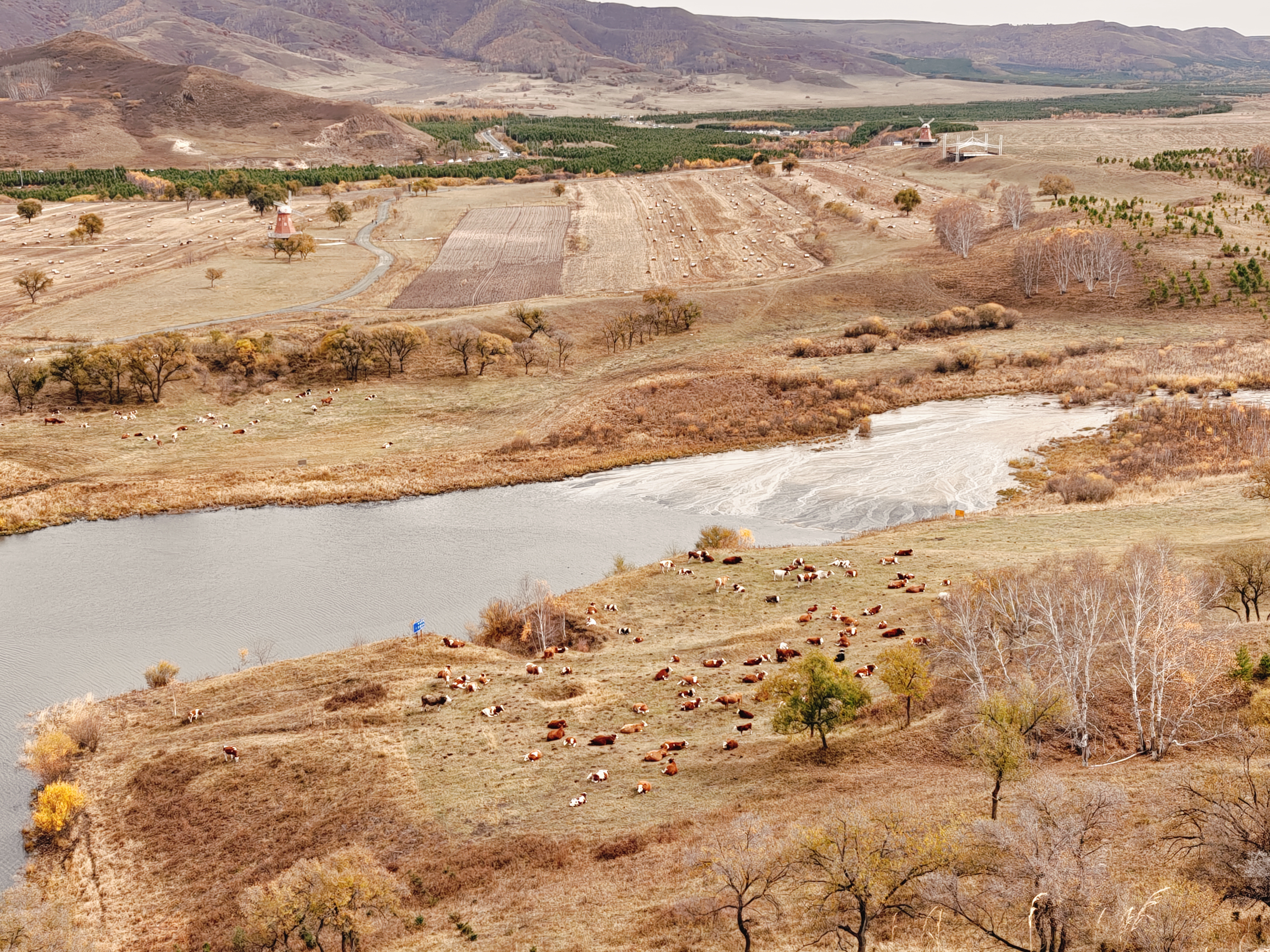 在天太永村,我们见到了最梦幻的湿地景观:「平静的水面像一面完美的镜子,倒映着金色的山林和湛蓝的天空。几头牛在水边悠闲地饮水,它们的倒影清晰可见。偶尔有候鸟飞过,在水面激起圈圈涟漪,打破了这份宁静,却又增添了几分生动。」