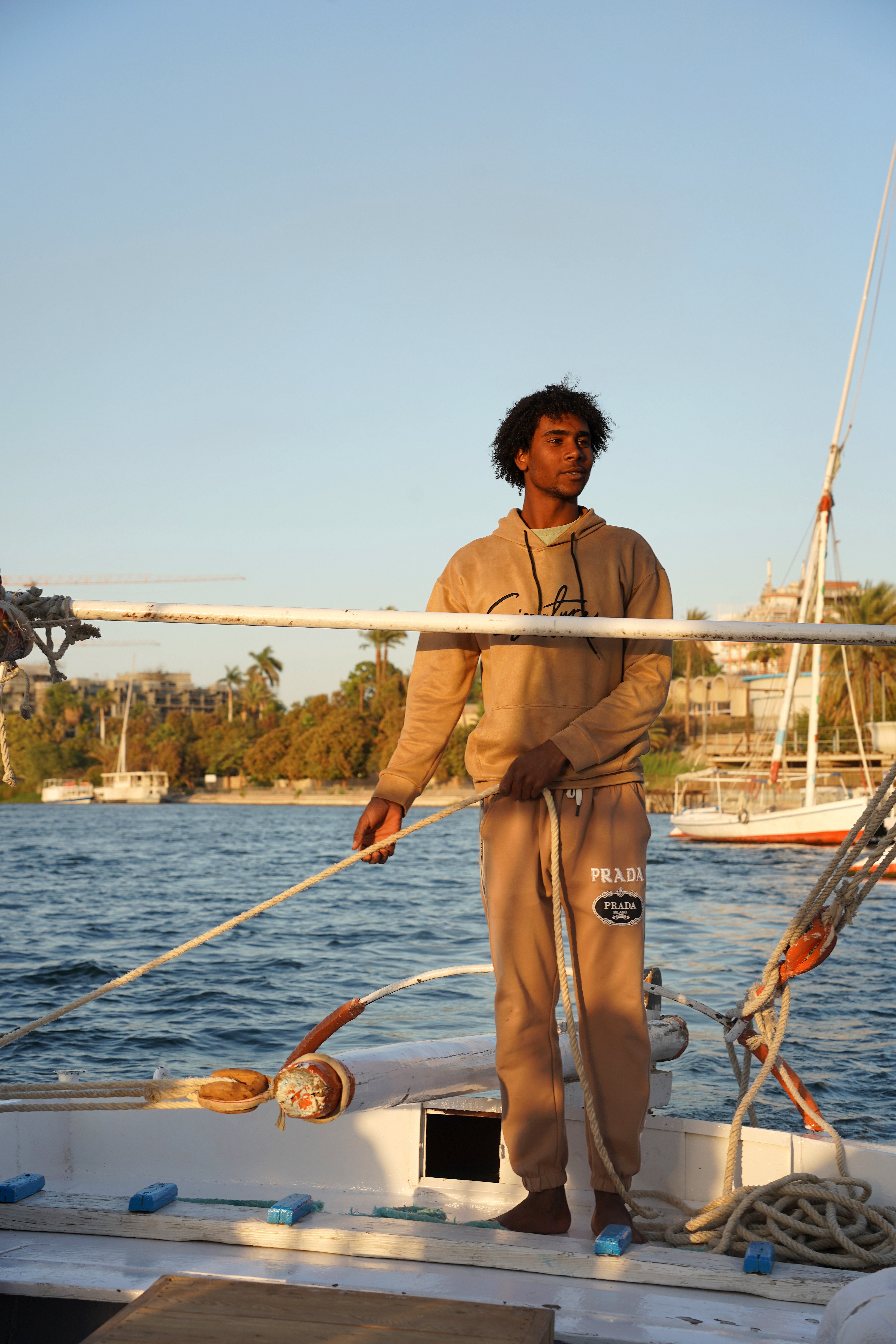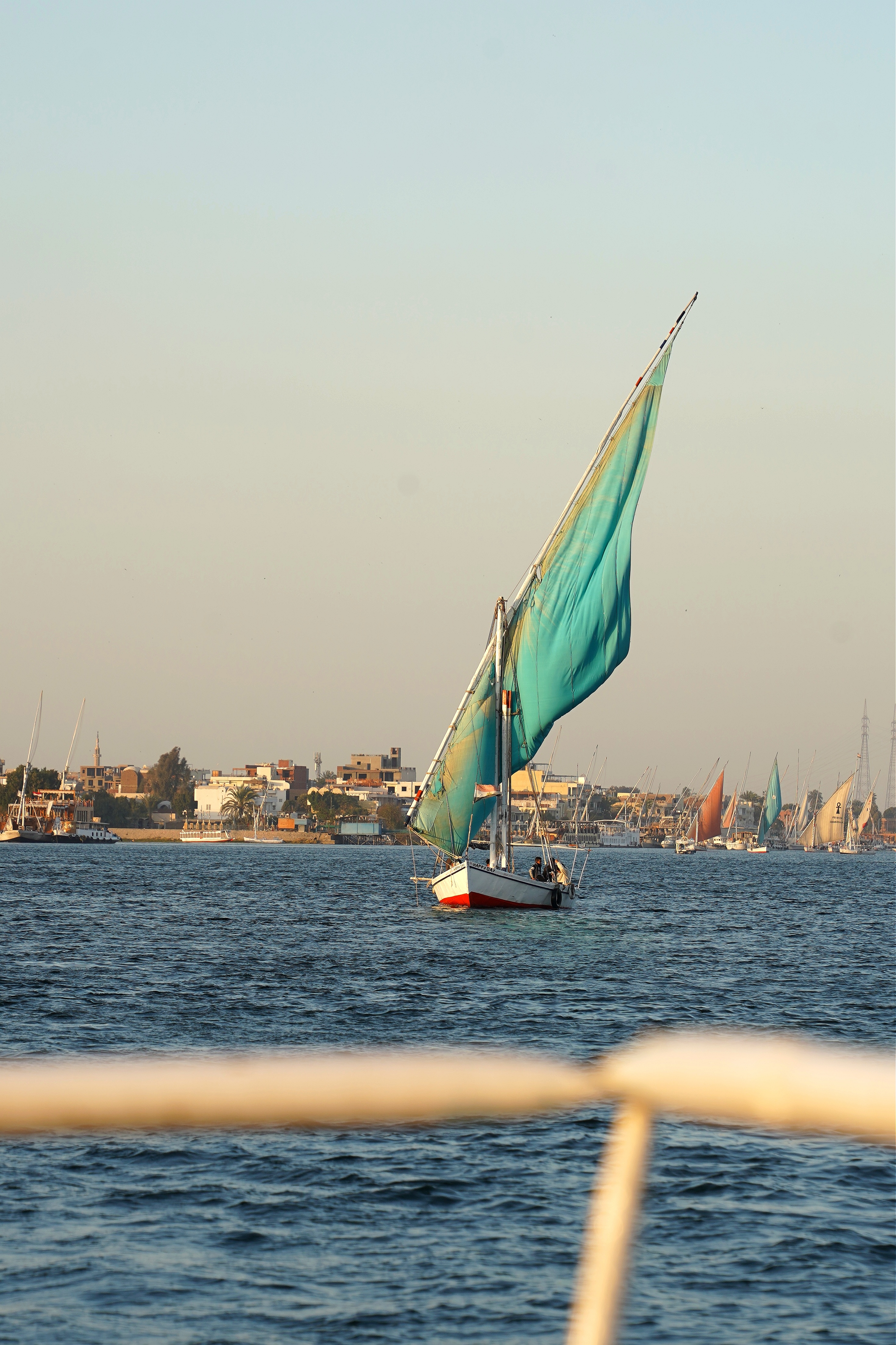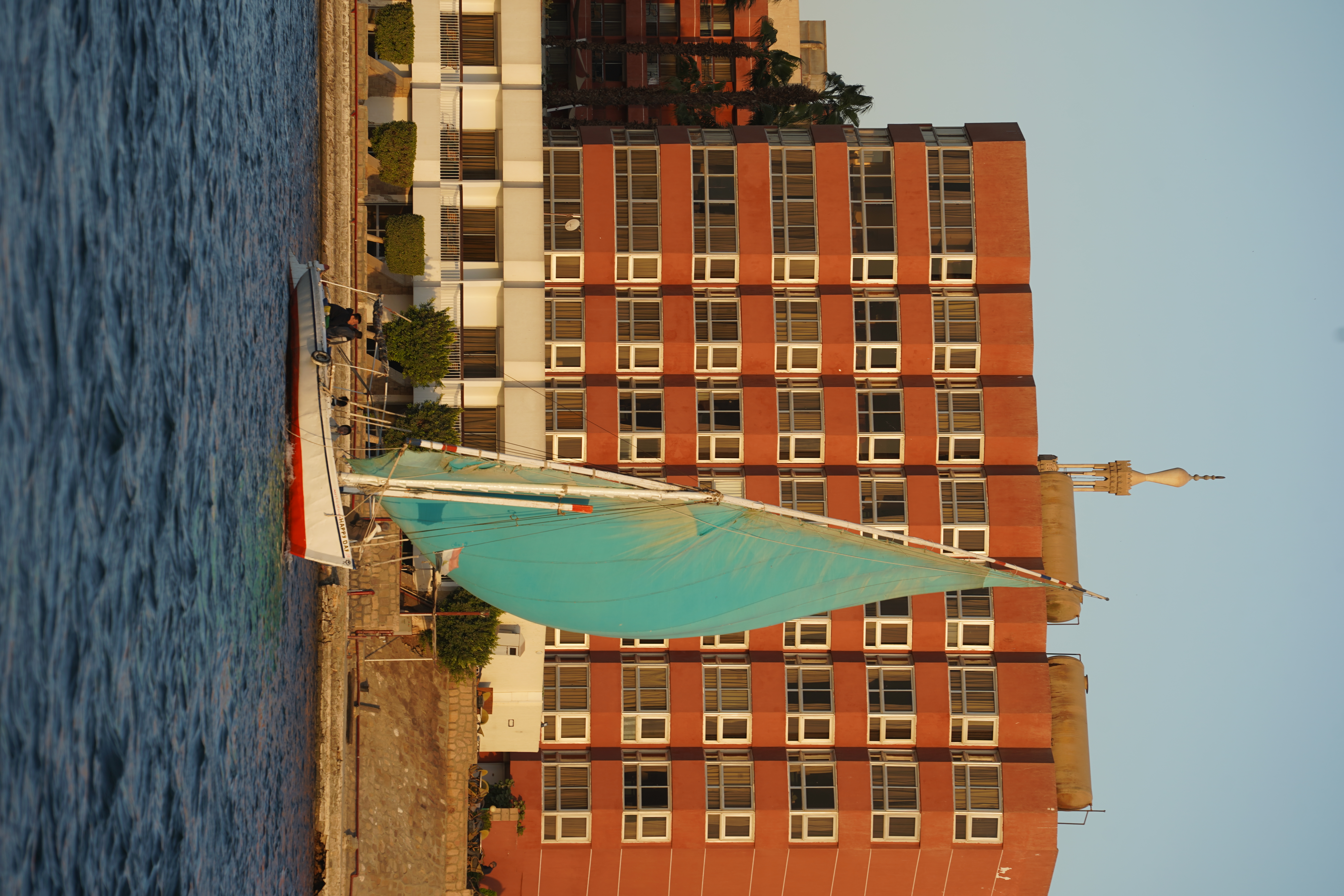 傍晚时分,我们前往尼罗河畔,体验尼罗河帆船游(费卢卡帆船),这是卢克索最具特色的体验之一,也是感受尼罗河落日的绝佳方式。帆船是传统的木制三角帆,纯风动力驱动,环保又安静,乘坐帆船在尼罗河上漂流,仿佛穿越回了千年前的埃及时代。登船点位于东岸冬宫酒店前,交通便利,费用约150埃镑,性价比很高。