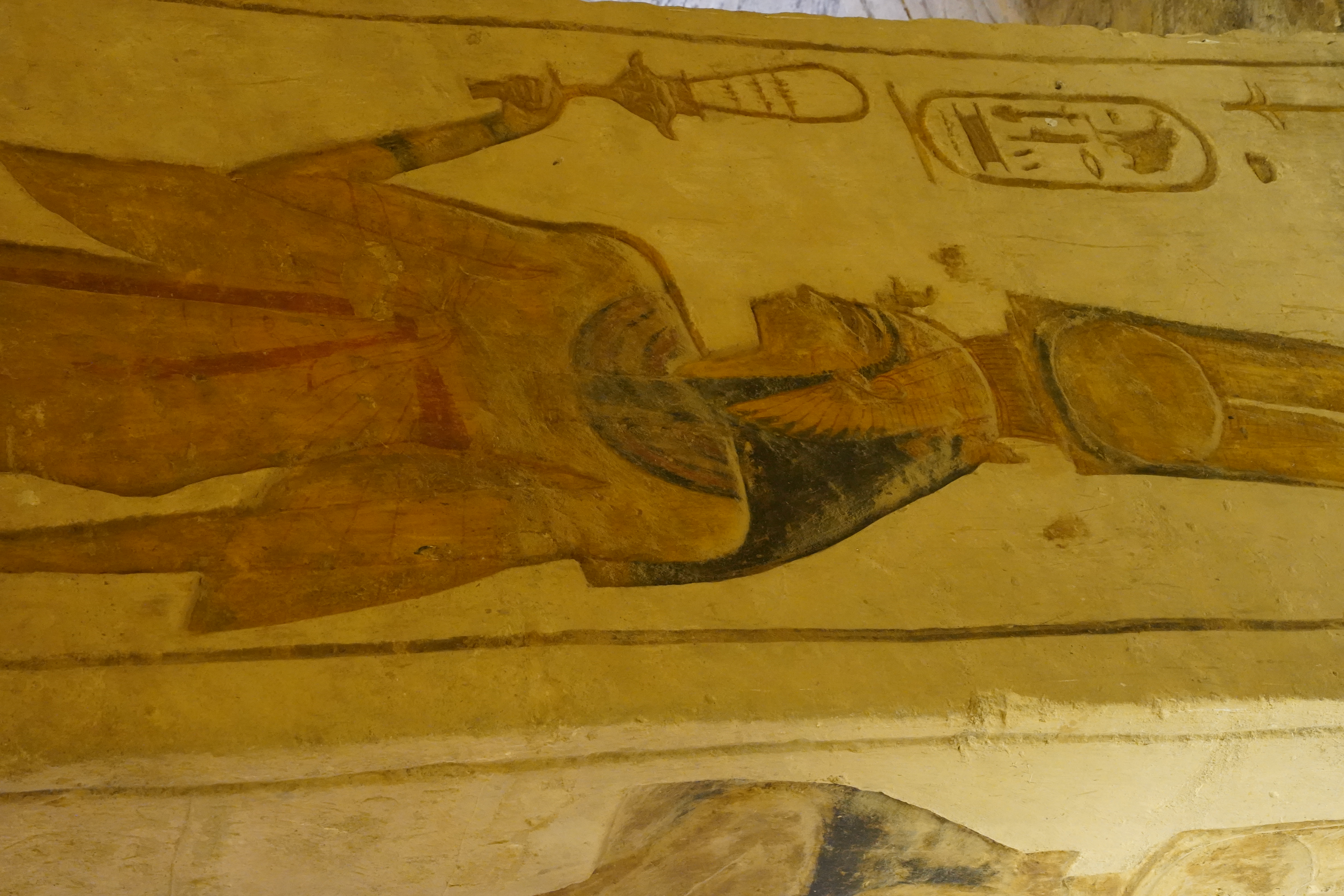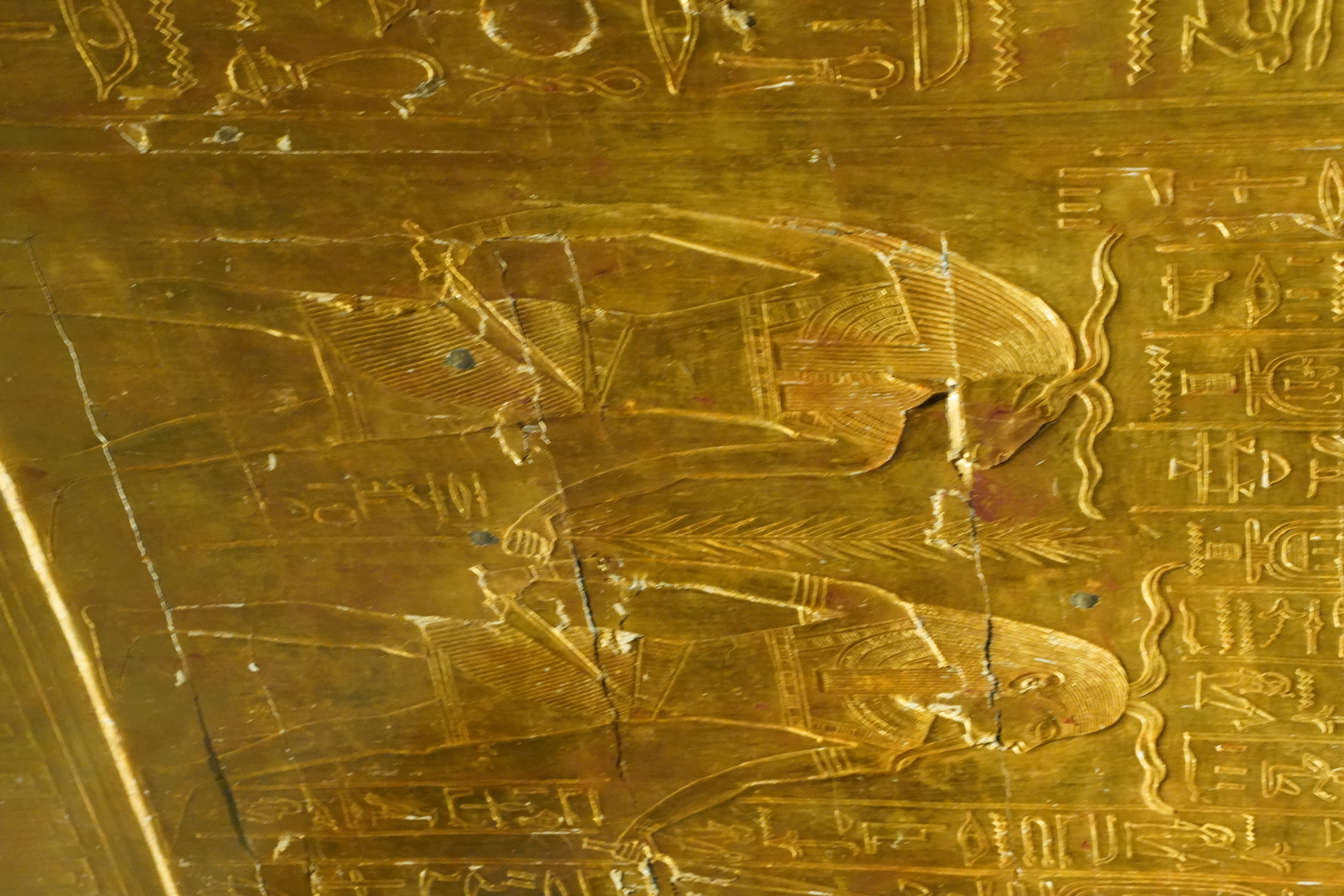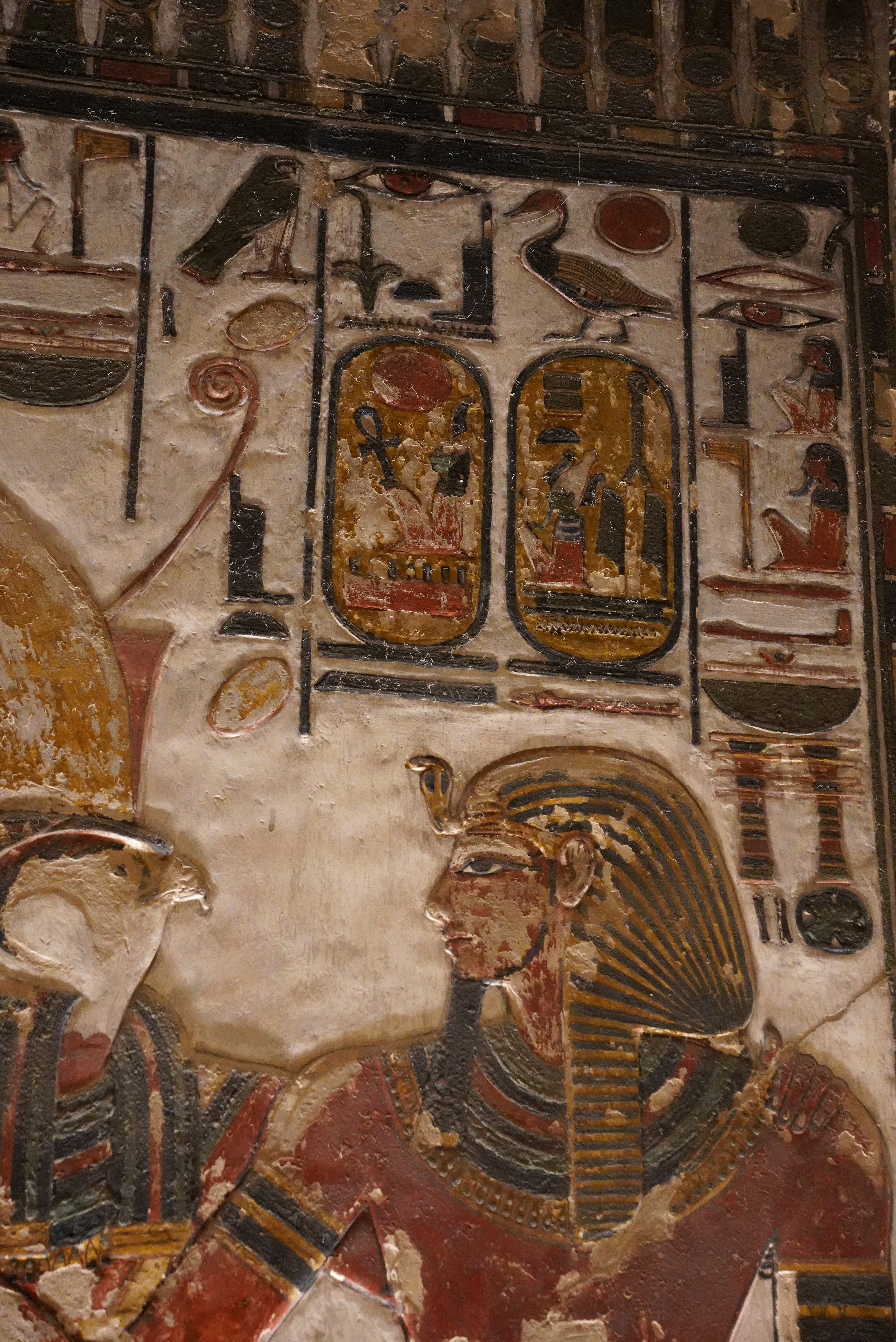 走进帝王谷,沿着陡峭的石阶向下走,便可以看到一座座陵墓的入口,陵墓的入口隐藏在群山之中,十分隐蔽,这也是古埃及人为了防止陵墓被盗窃而设计的。我们参观了几座著名的陵墓,其中图坦卡蒙陵墓最为震撼,陵墓内的陪葬品丰富,有黄金面具、黄金棺椁、珠宝、器皿等,虽然大部分文物已经被转移到了大埃及博物馆,但依旧能感受到当年的奢华与辉煌。陵墓的墙壁上刻满了精美的壁画,描绘着图坦卡蒙法老的生平、祭祀仪式以及死后升入天堂的场景,色彩鲜艳,细节细腻,让人不禁感叹古埃及人的艺术水平。