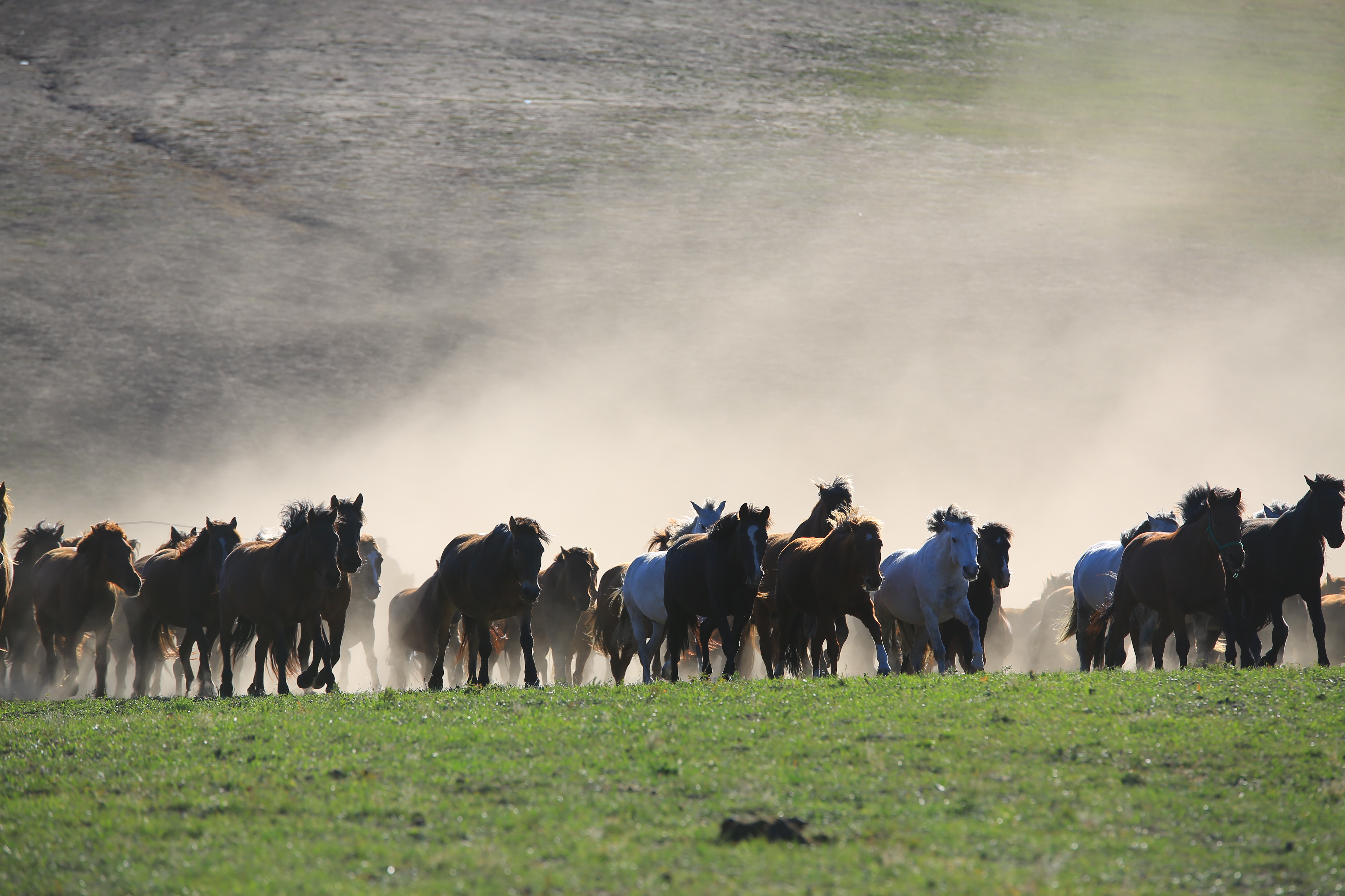 令人热血澎湃的万马奔腾~~~(建议拍摄时安全快门1/600S以上,因为马奔跑时速度很快,若想拍出速度感可以适当放慢快门速度。