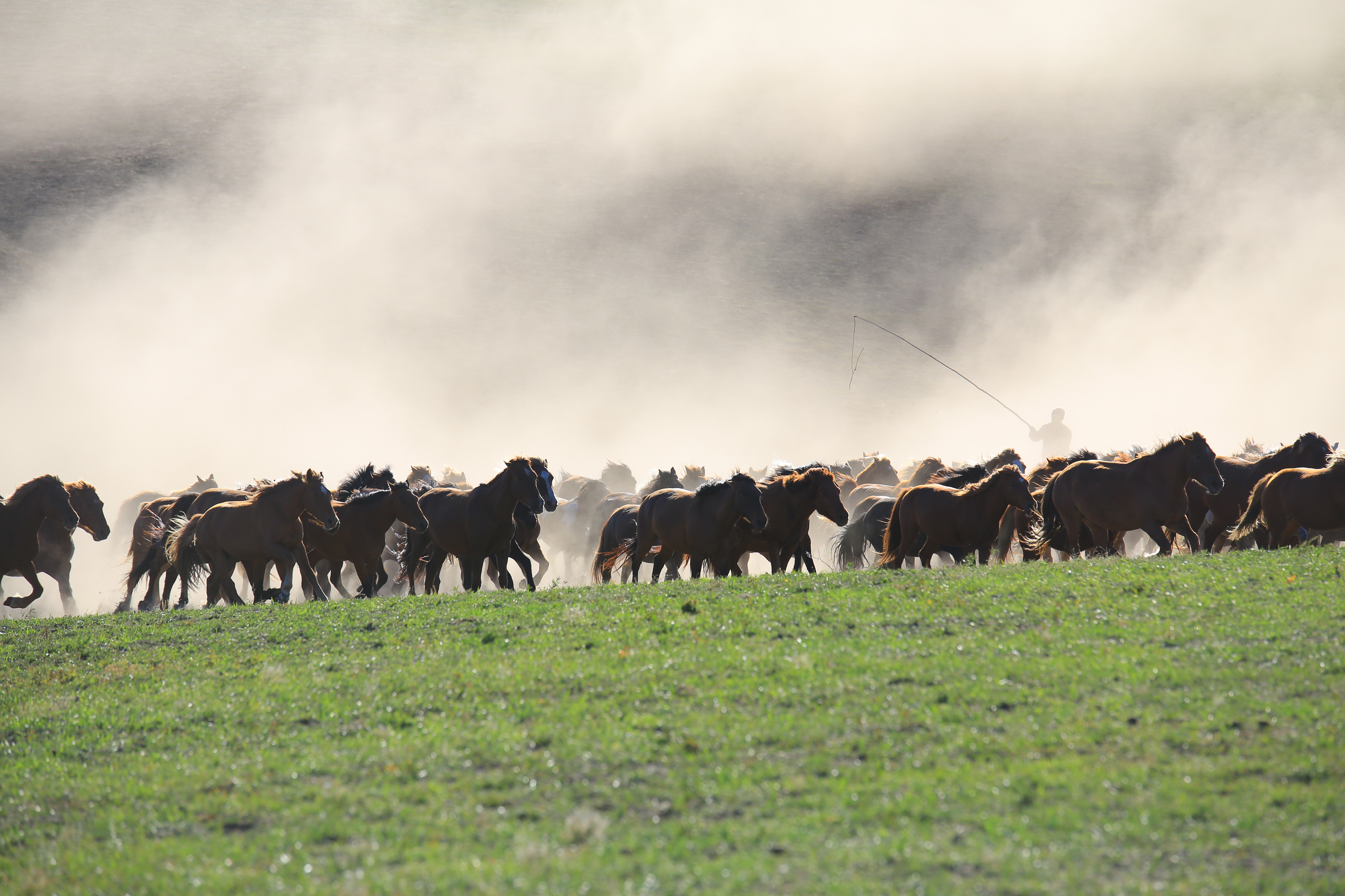 赶马的人。如孤独的侠客,手拿长枪,行走在无际的草原。