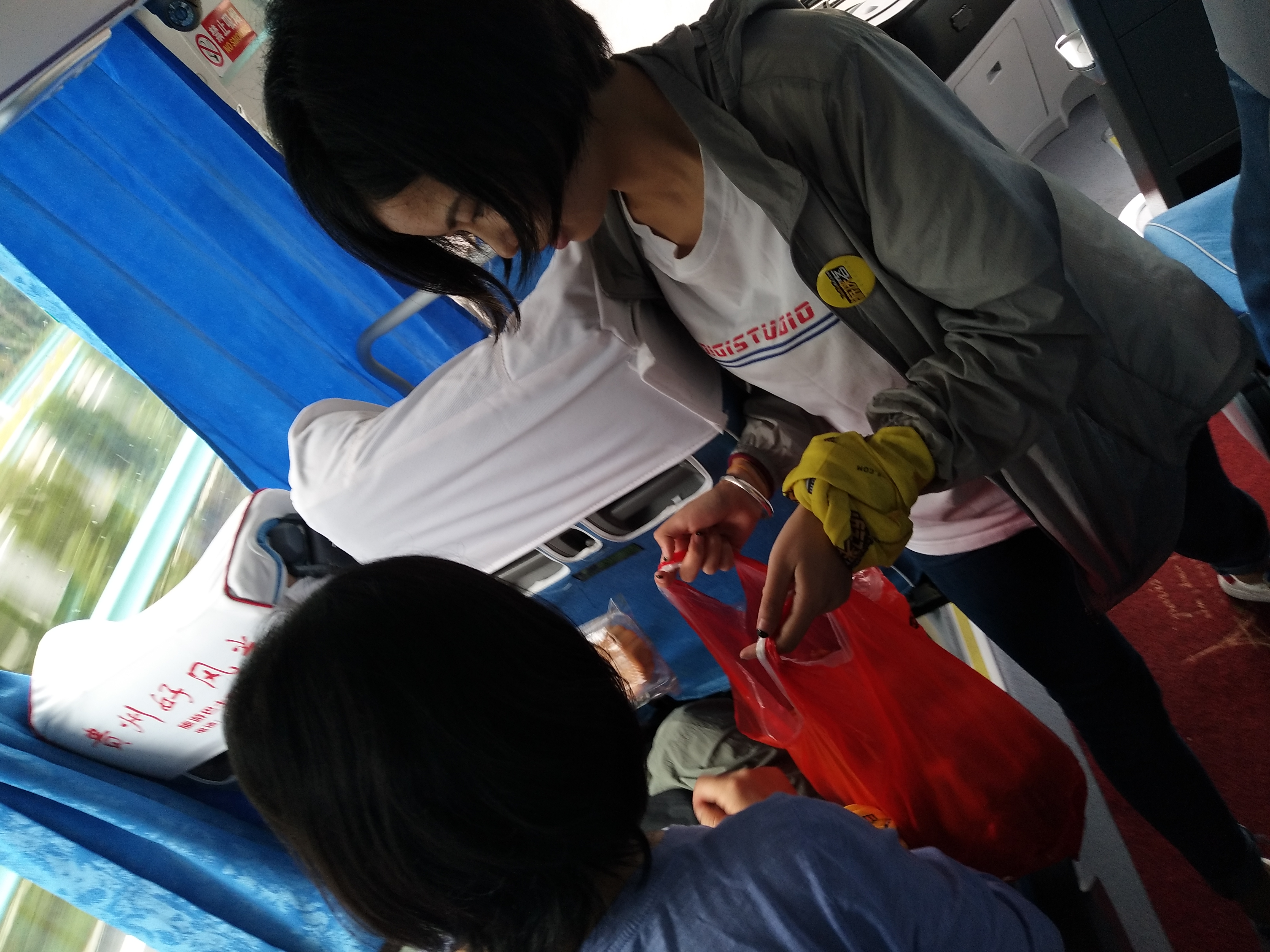 一大早上车,导游毛毛为大家分发月饼,大家一起开开心心过个中秋节吧。