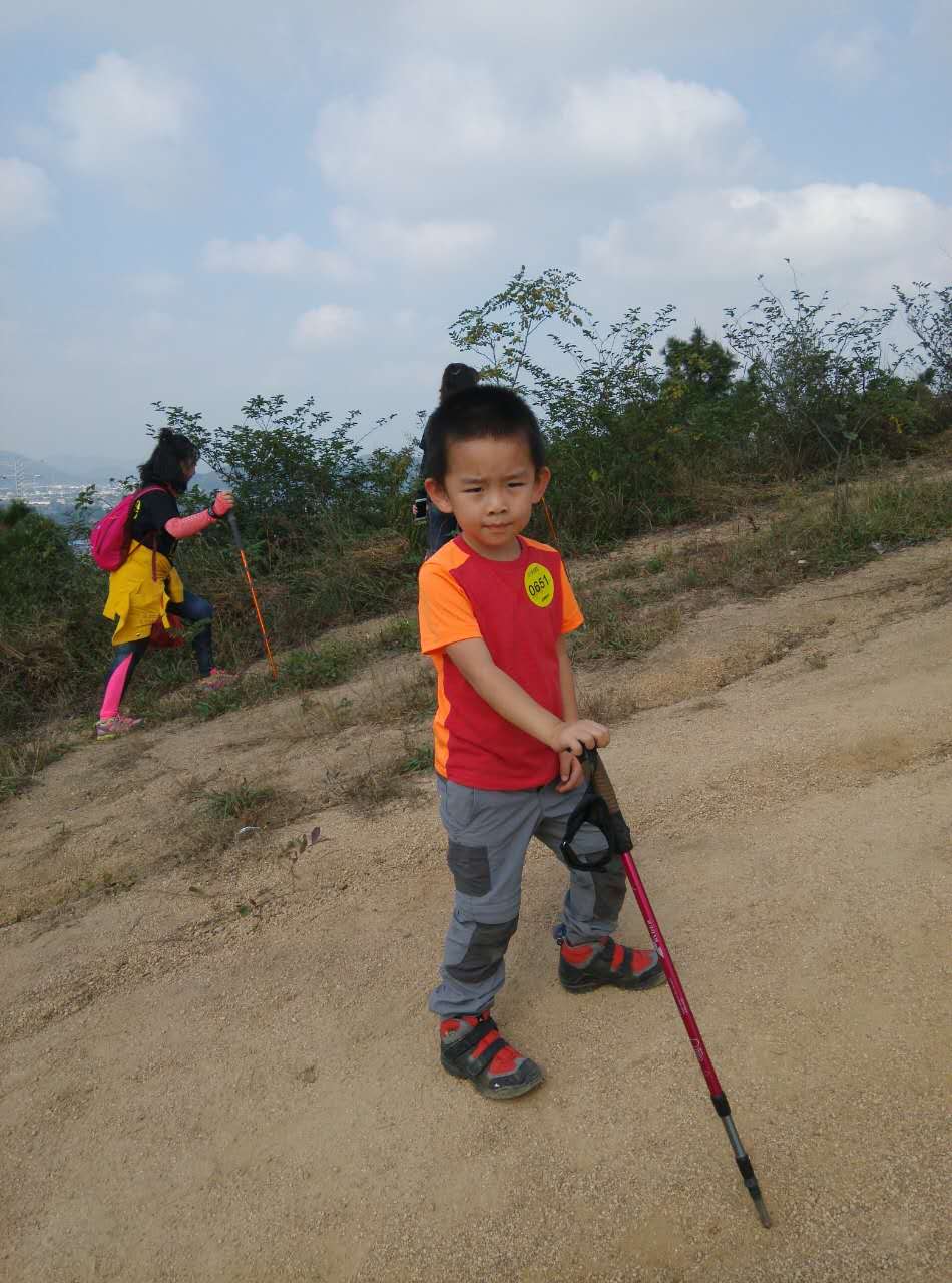 就这样,芝麻拿着两支登山杖,芝爸背着他一路往前。