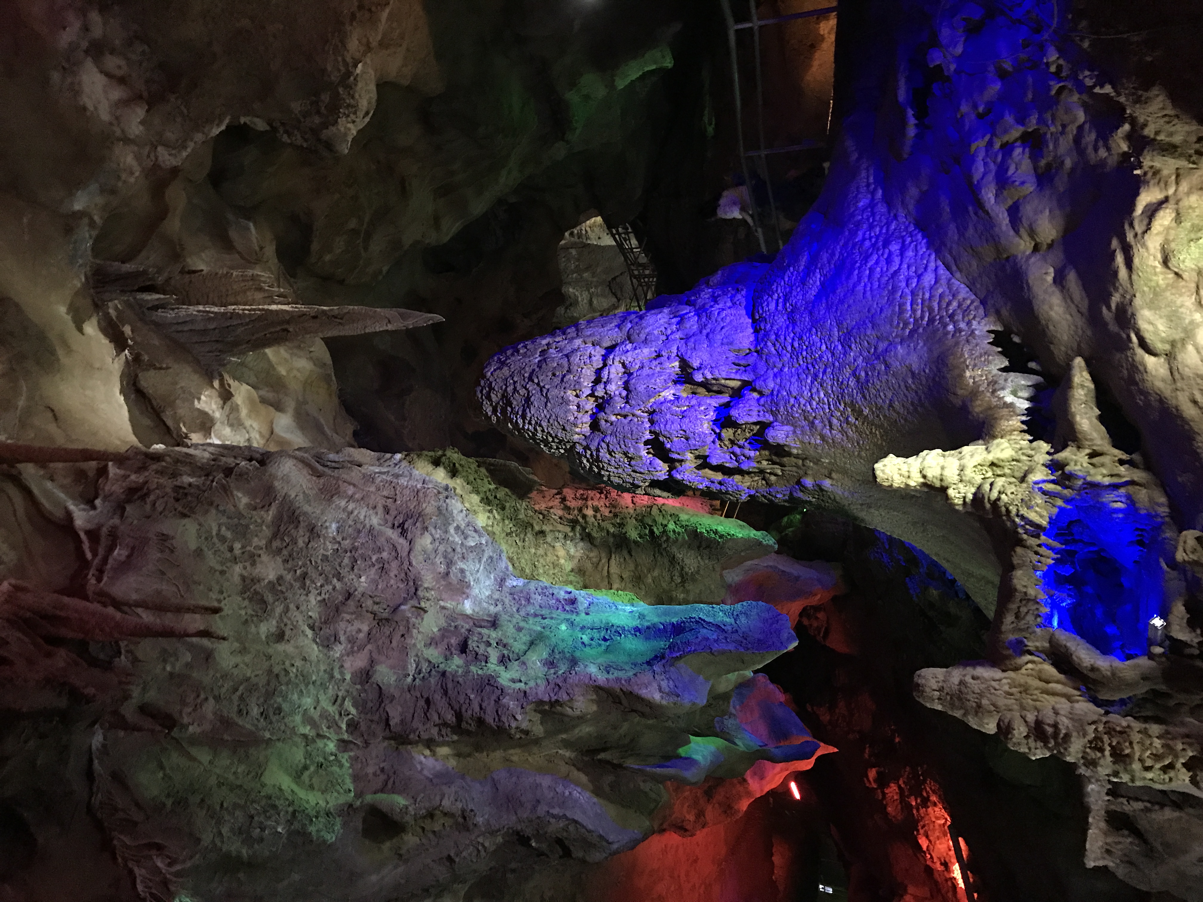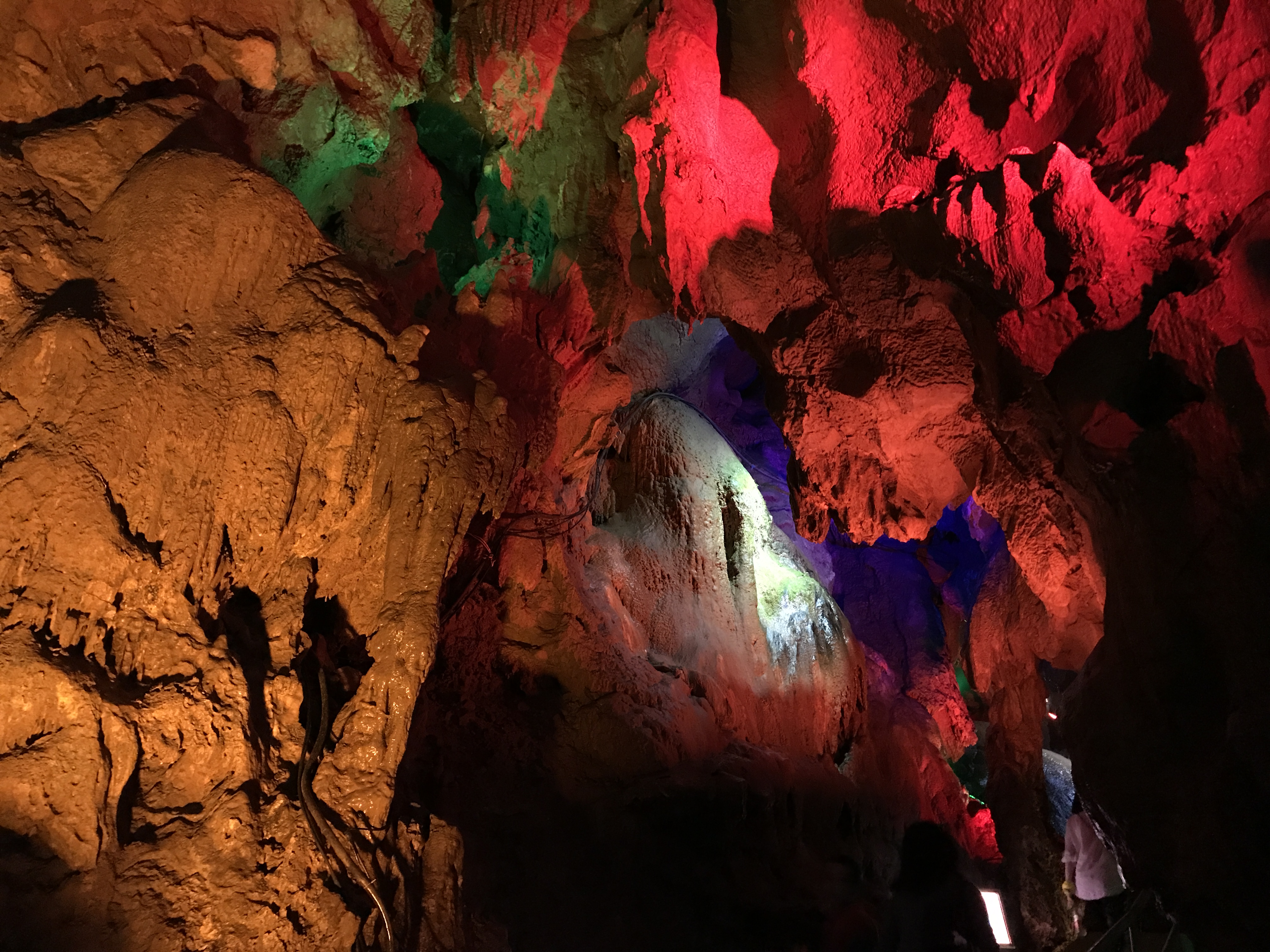 首先到了著名的国家4A级生态风景旅游区天子地,我们一路往山顶徒步前行,步道修整的很是干净好走,景色宜人。半山腰的观景台还能看见云雾缭绕的山头云海,走的有些热了突然感受到一阵寒气逼人,原来是到了天子洞。天子洞位于海拔750余米的丛林深处。全长1200米,总面积6000平方米,是目前亚洲最大的竖井式溶洞,其中,东海龙宫、梦幻舞台、天上人间、五谷丰登、玉石佛塔等百余组奇观异景犹如神仙点化,惟妙惟肖。分不清是在西游记的梦境里还是在现实呢。