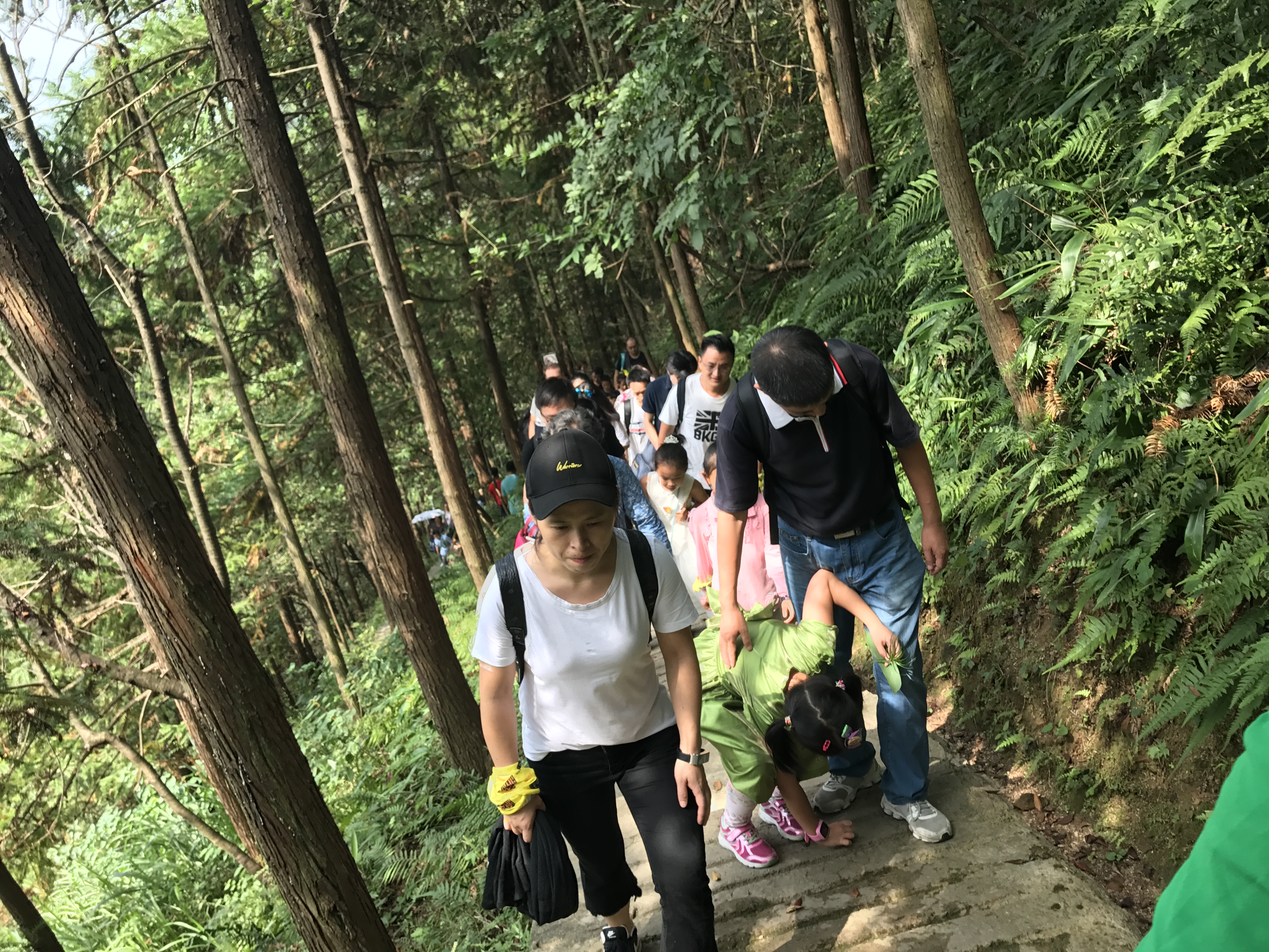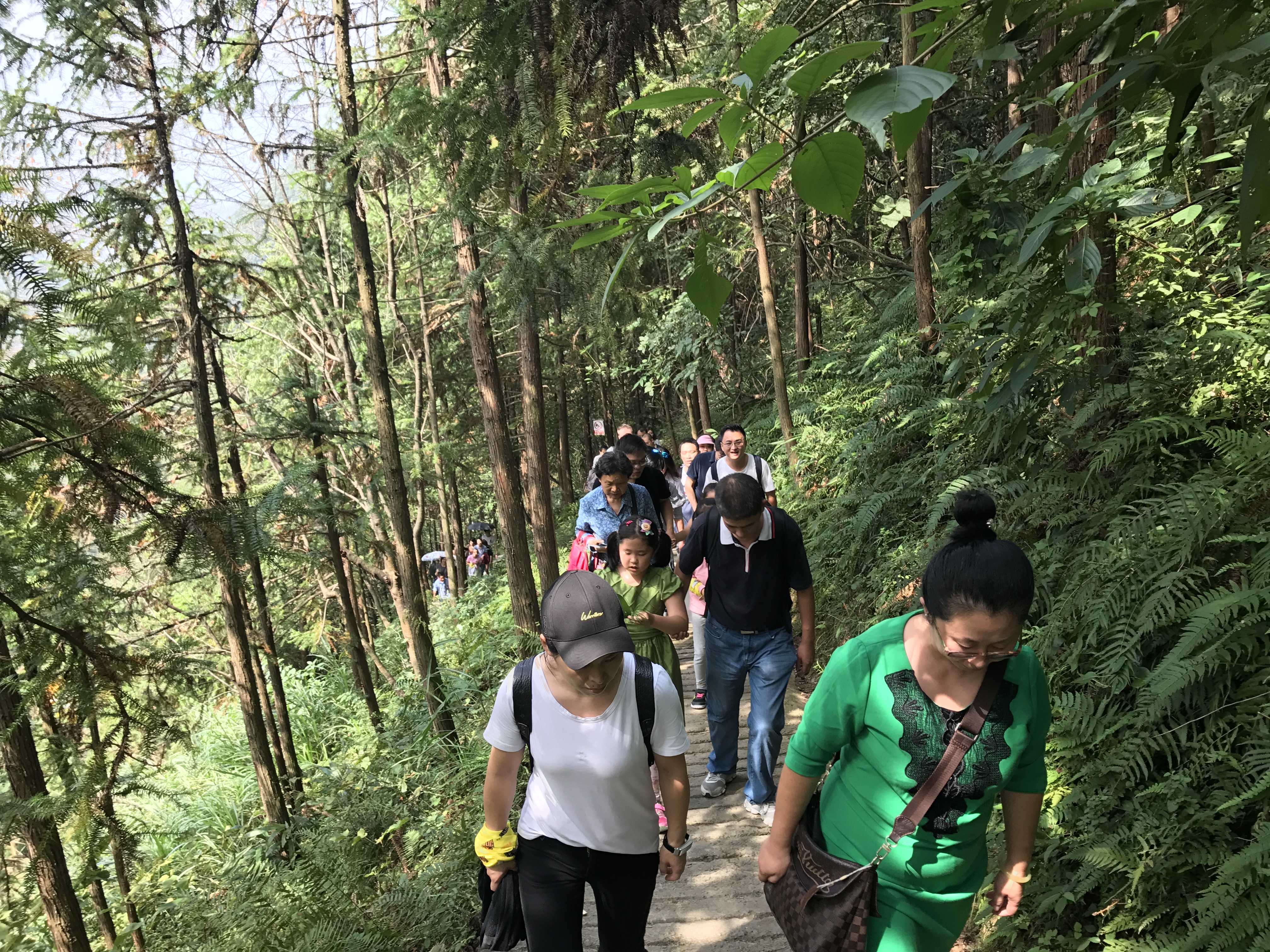 前方有路,一道光,走进,豁然开朗,原来不知不觉,恍惚间已经到了洞口。出了溶洞我们拾级而下,山间洗肺真不是盖的,一路鸟鸣婉转、树荫斑驳。溪水潺潺,像走在雨中,却不湿身。