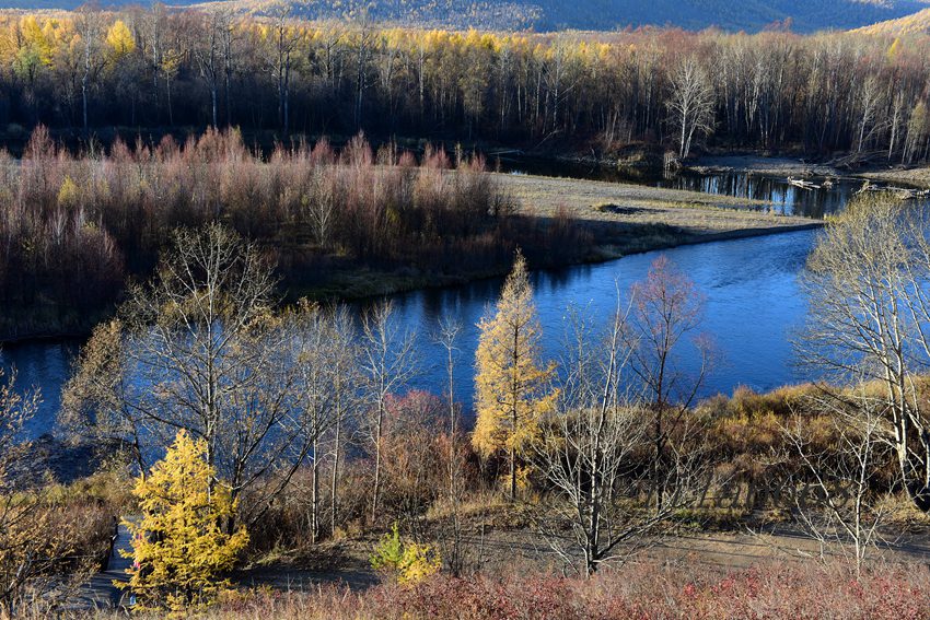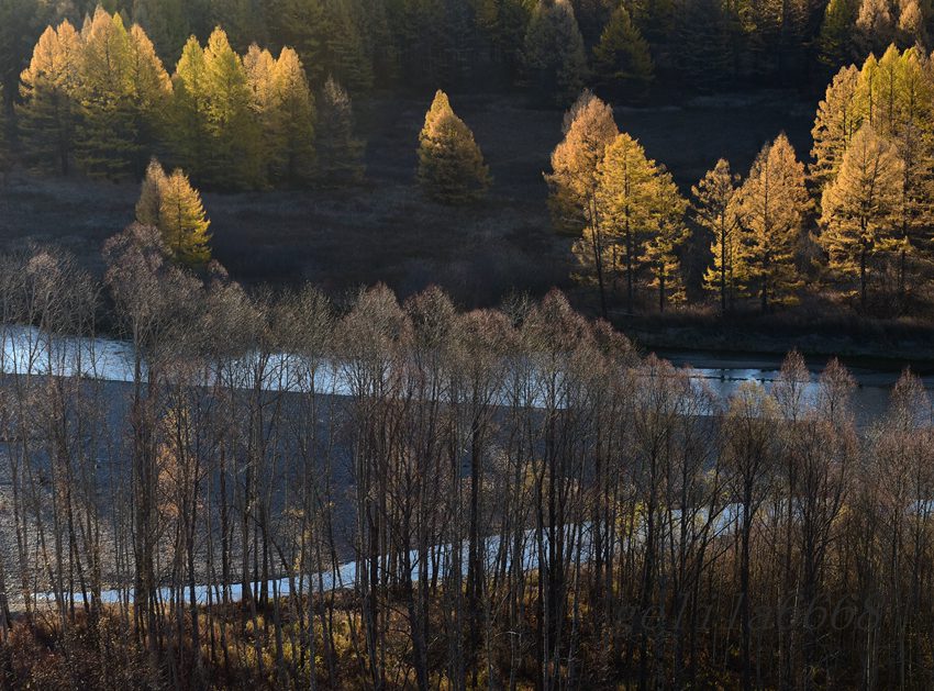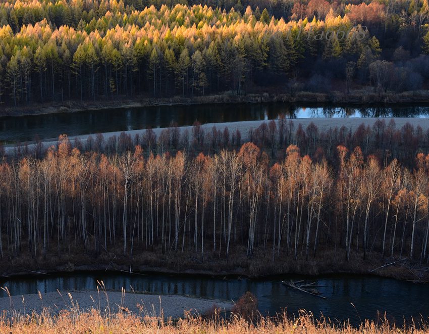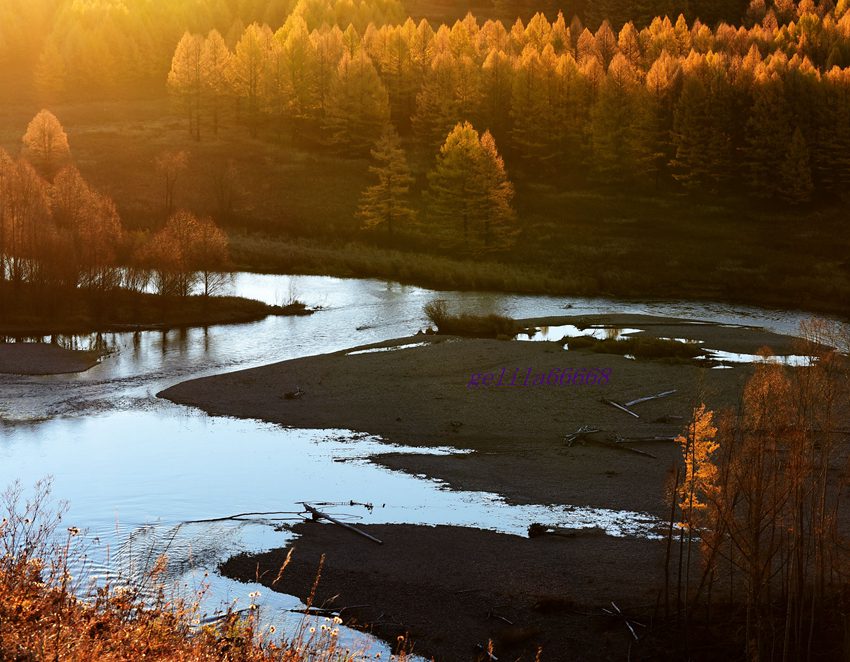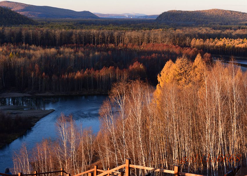 此行拍的最满意的秋色当属9月30日早晨在根河源湿地景区。我们5点出发,5点半到景区,上观景台架好脚架是5:45,日出是5:54。开始的画面是红色尽染,半小时后太阳升上来各种色彩就丰富了。