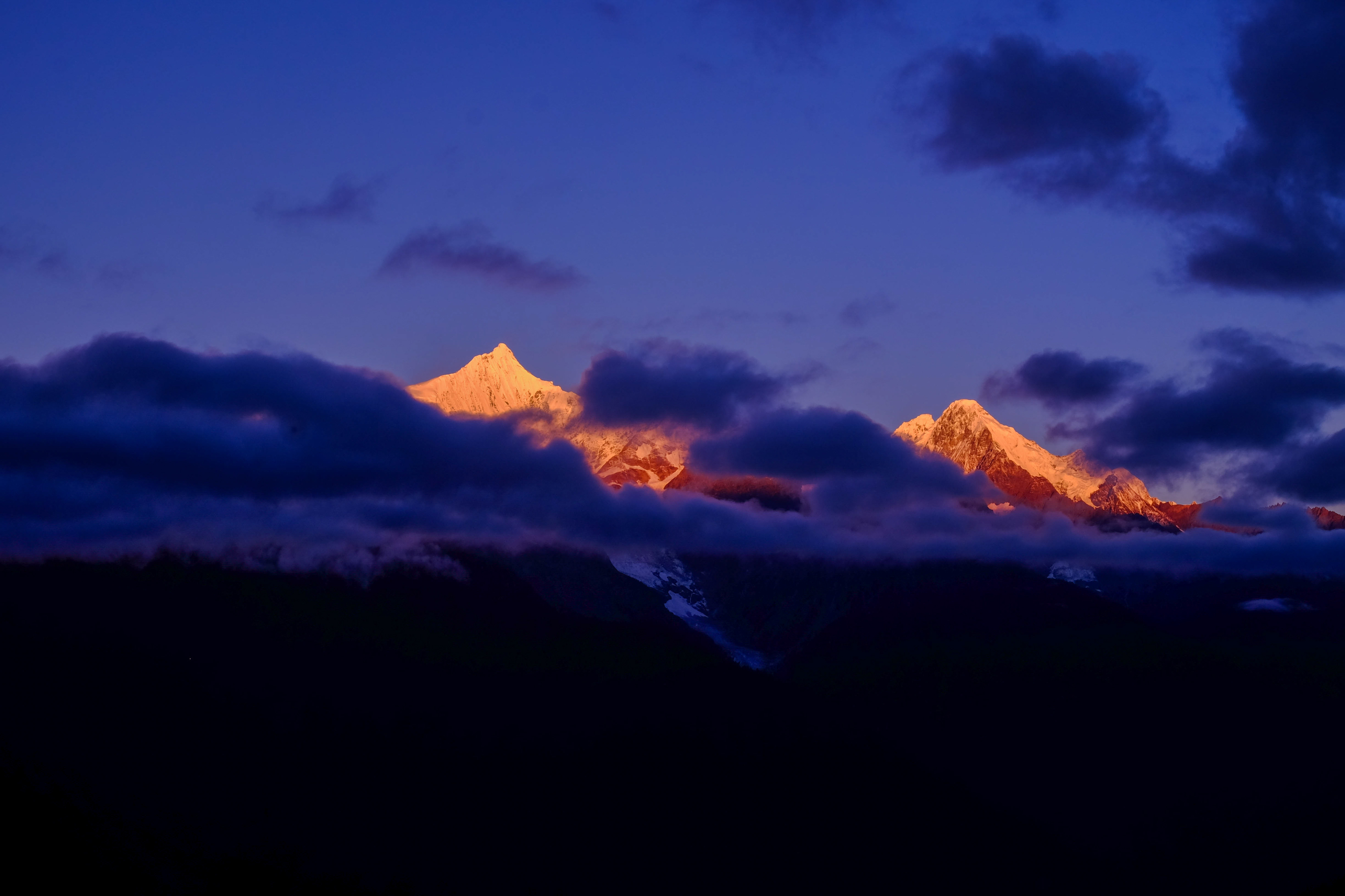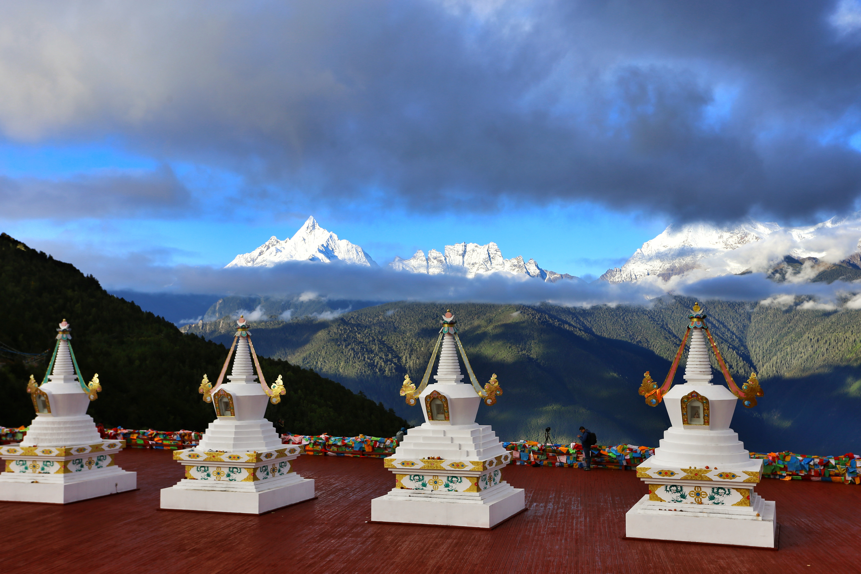 梅里雪山有十三峰,是藏传佛教的朝觐圣地,主峰卡瓦格博在藏族民间更充满宗教意味,位居藏区八大神山之首,处于世界闻名“三江并流”地区,海拔6740米,是云南省的第一高峰,是全世界公认最美丽的雪山,被誉为“雪山之神”。藏族语意里,卡瓦格博,不单指最高的山峰,而是统指耸立的数座雪峰。