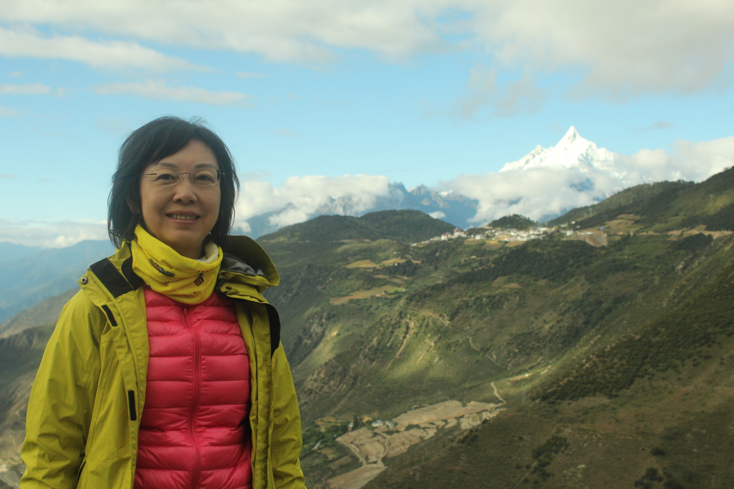 梅里十三塔,我们的莹莹在这圣洁的蓝天之下显得更加美丽动人、