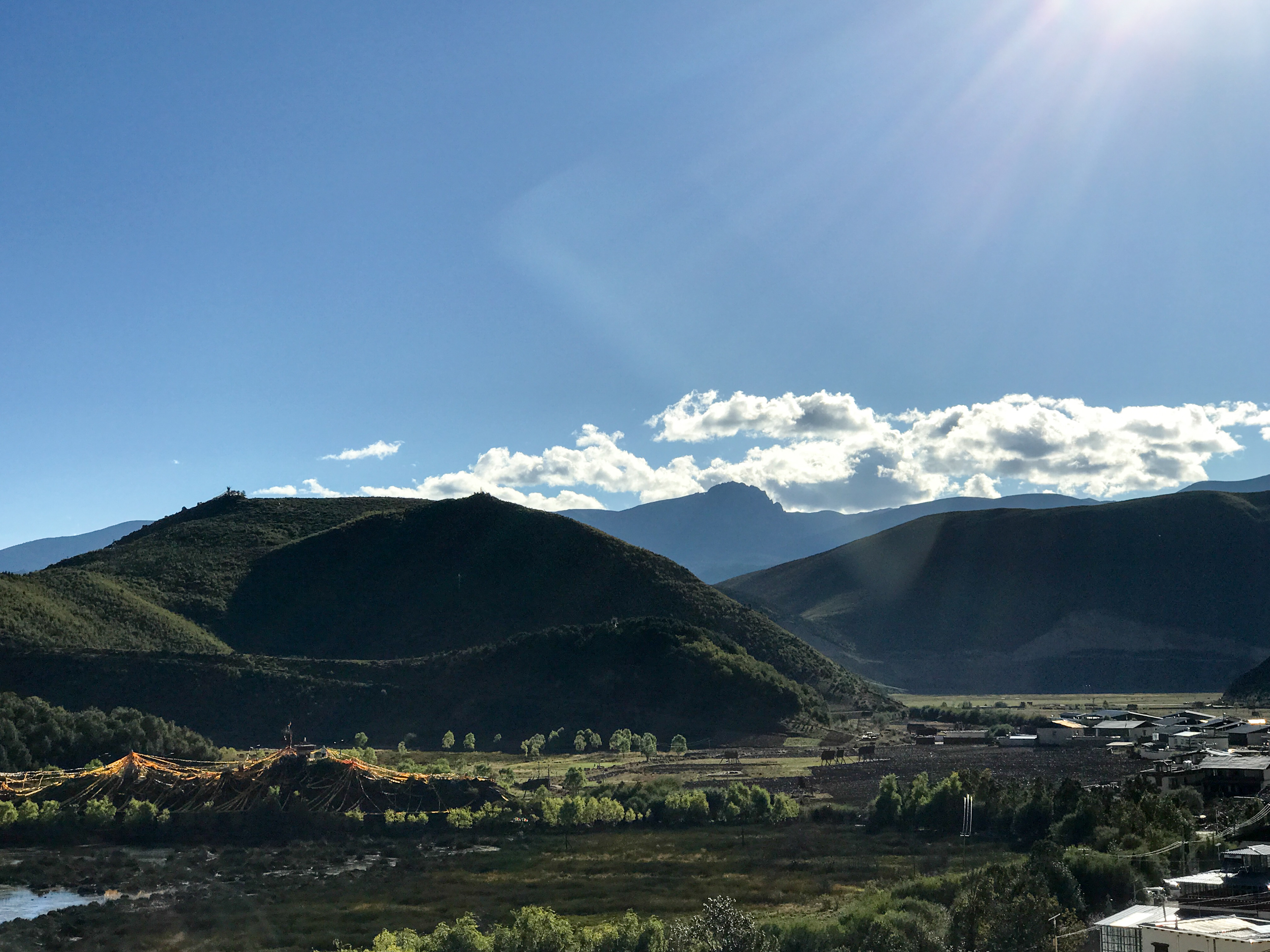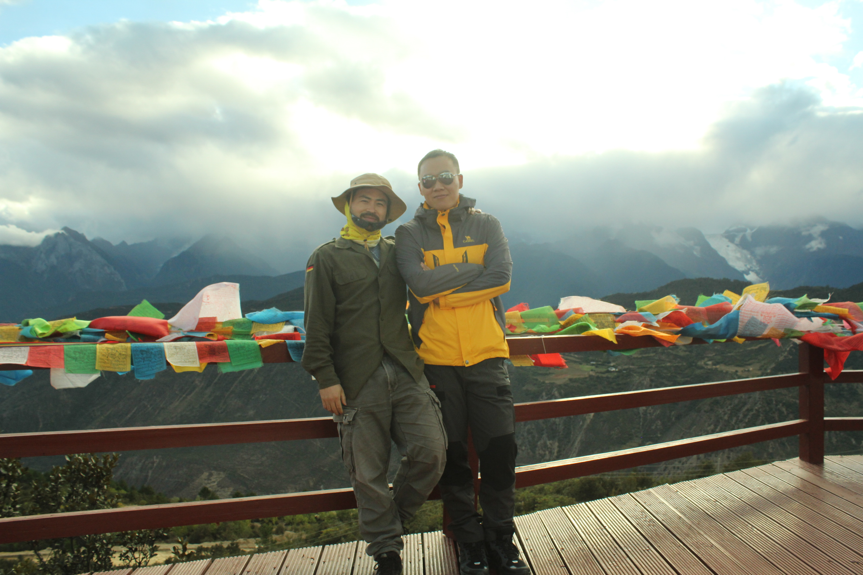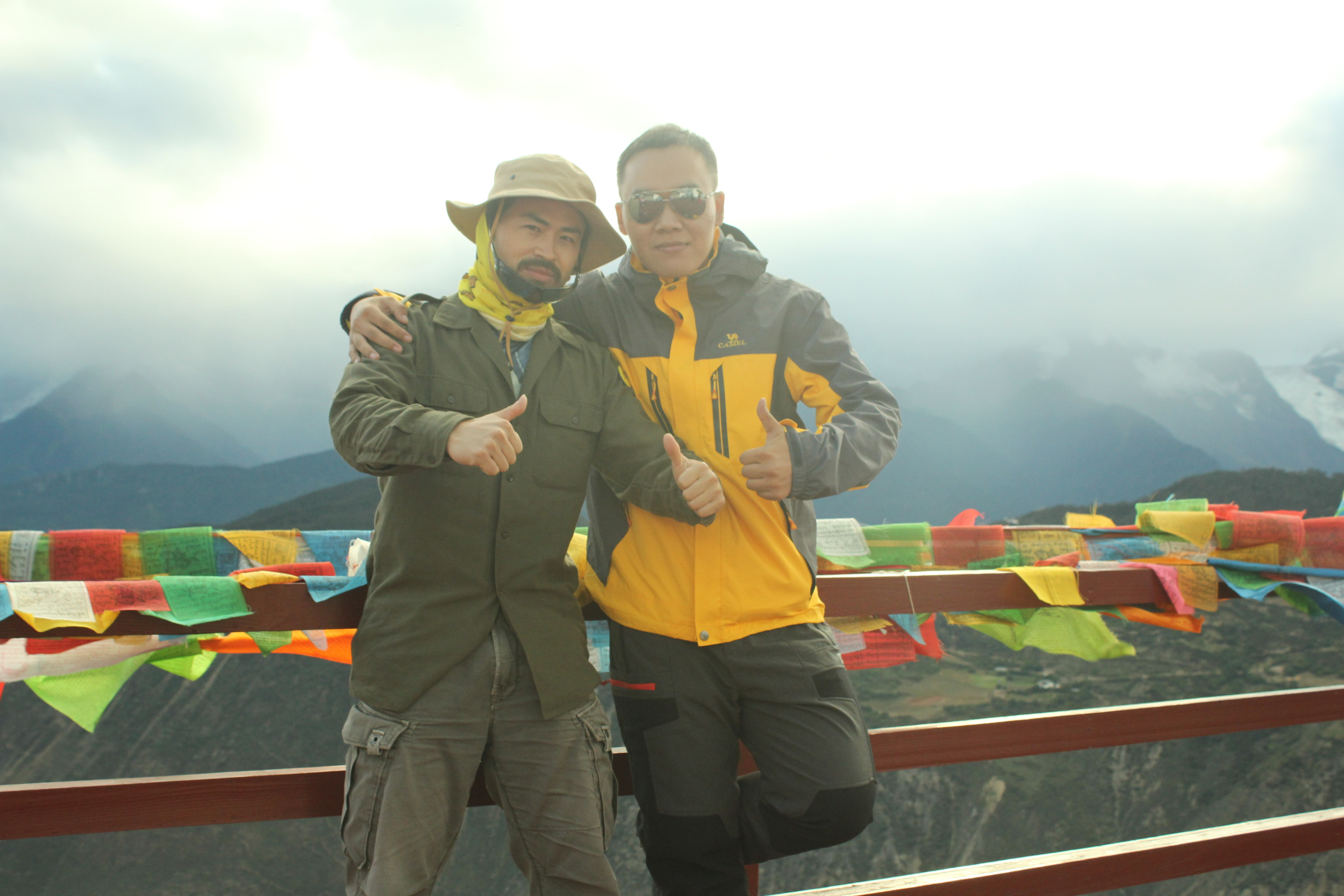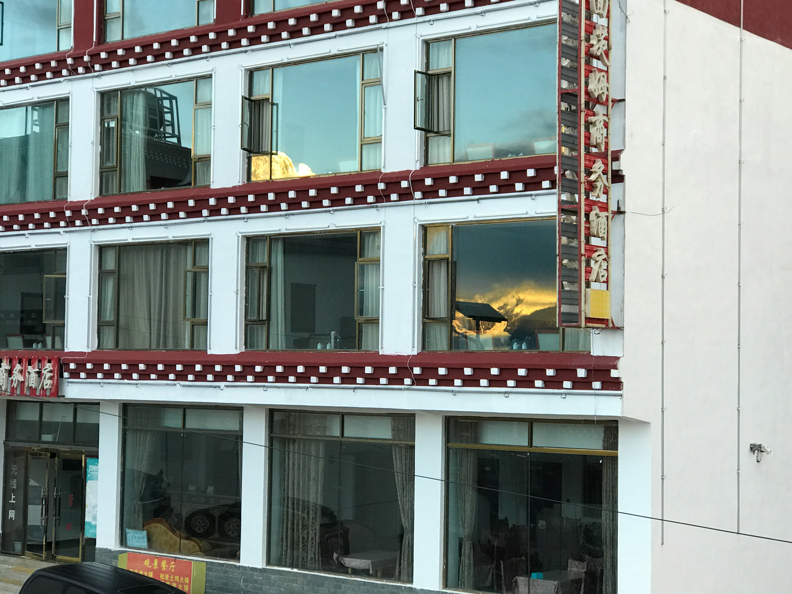 那一天我们以为我们不会看到梅里雪山,因为去程没有看到,但是地接导游多吉告诉我们,他会念经,一定能看到,心诚则灵。在回城的路上,还是阴雨绵绵,可是谁知道晚上我们就看到了月照银山,早上我起床一睁眼,天呢,惊艳!!