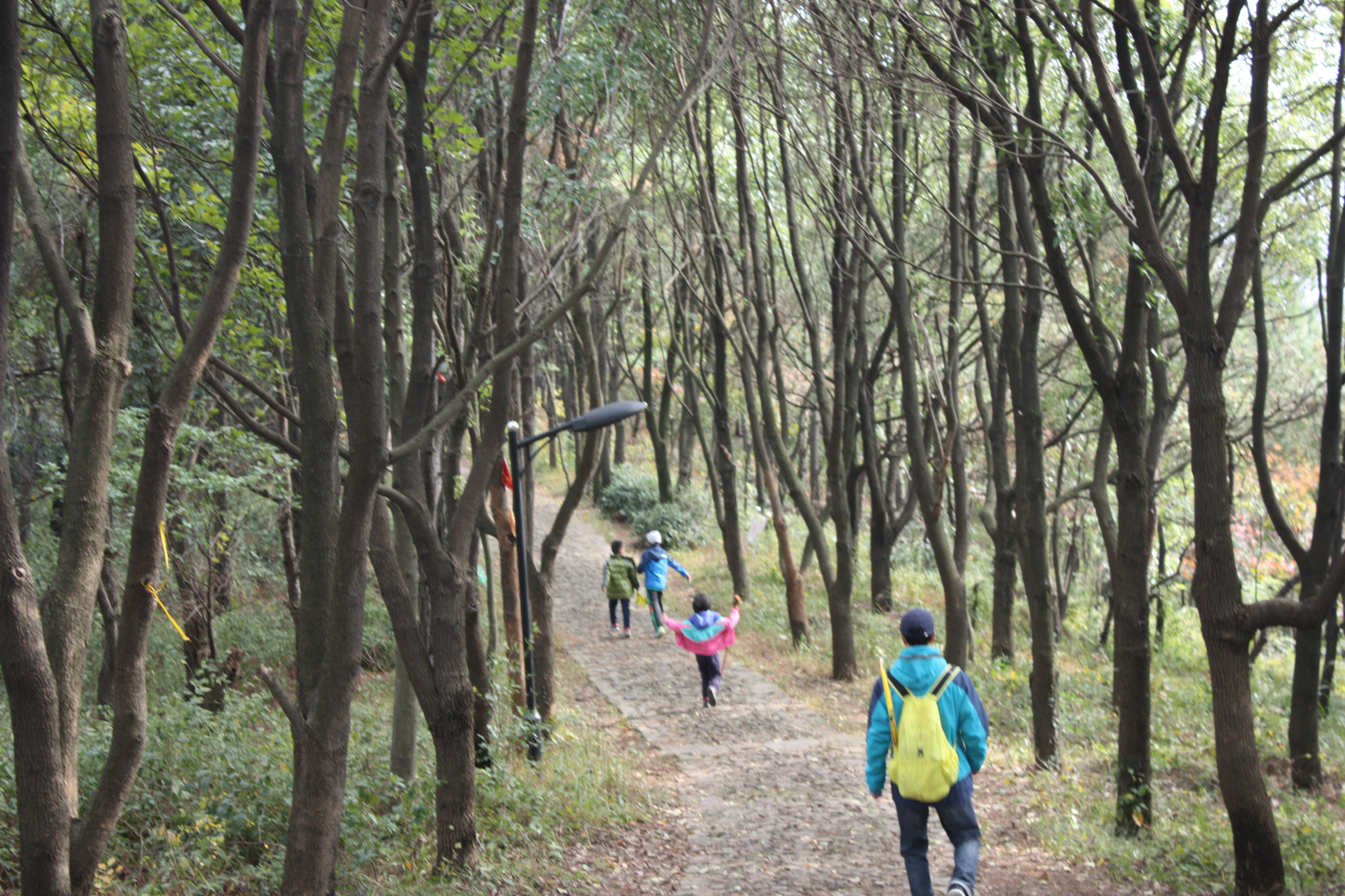 开头的一段山间小道是此行最难的一段路,碎石,落叶,微风,野桔,致身在这样的羊肠小道,山路的崎岖也变得不那么艰难。队伍中最小的小朋友只有4岁,在爸爸一路的鼓励下也独自走完,几个年龄稍大的小朋友一路只想超过领队和向导,到了大自然,他们都集体放飞。
