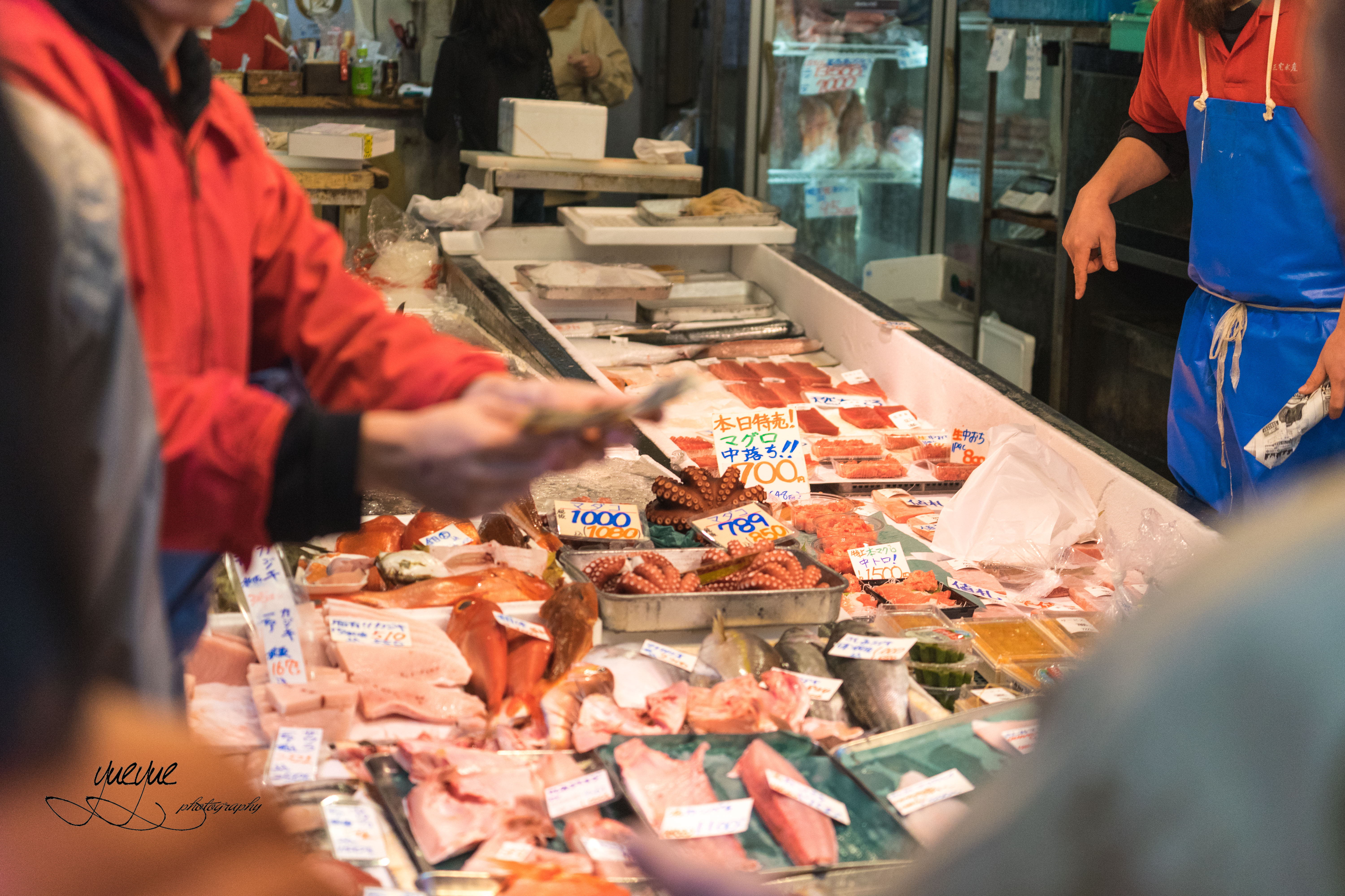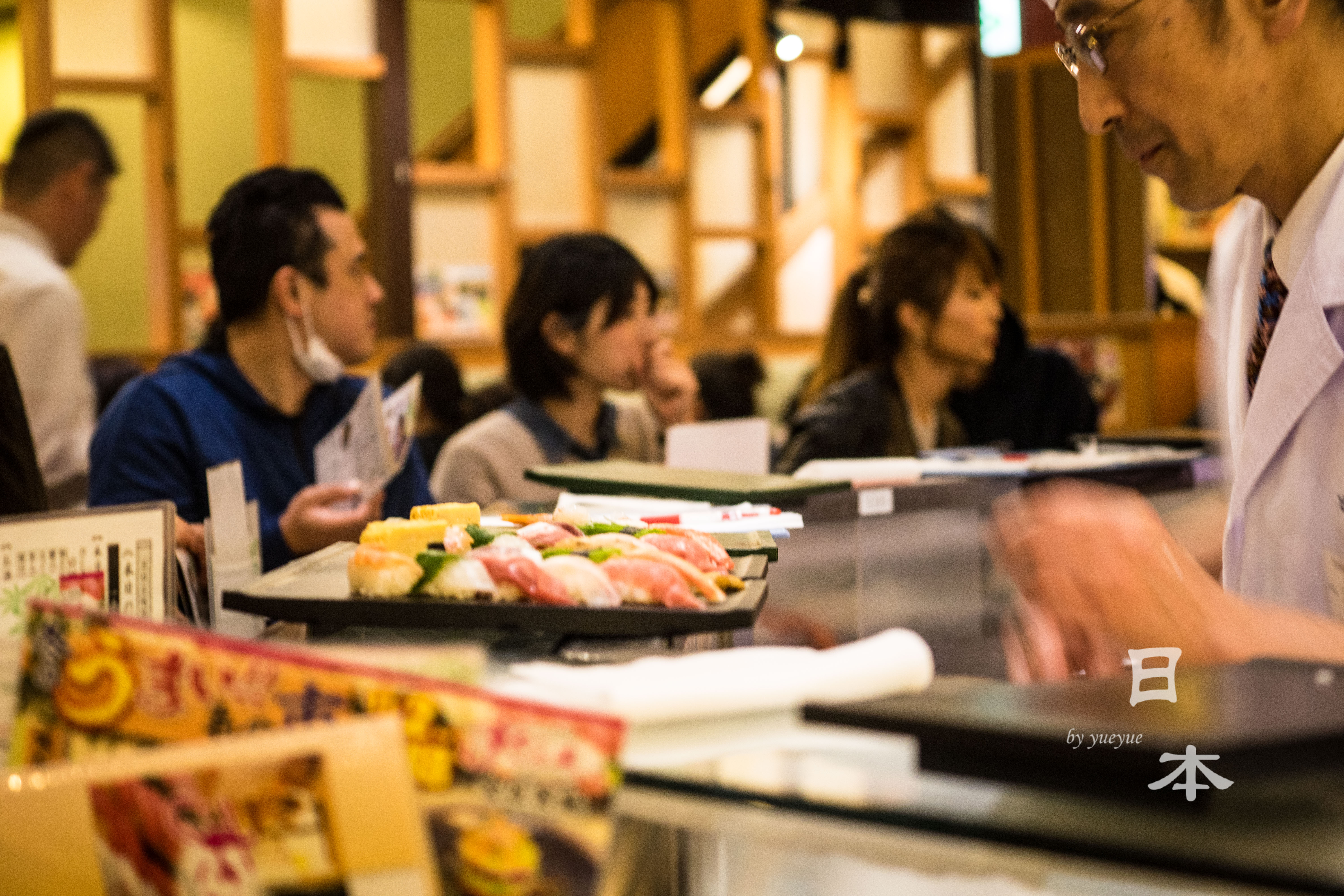 推荐一家寿司店,叫鱼河,筑地市场上貌似有两家,看到门口有很多人在排队于是我也跟着排,后来进去果然没有失望... 我其实不太吃得来生鱼片,但是这家的味道我蛮喜欢的,厨师就在你面前做寿司,而且时不时就会一起喊个口号,感觉气氛很不错。