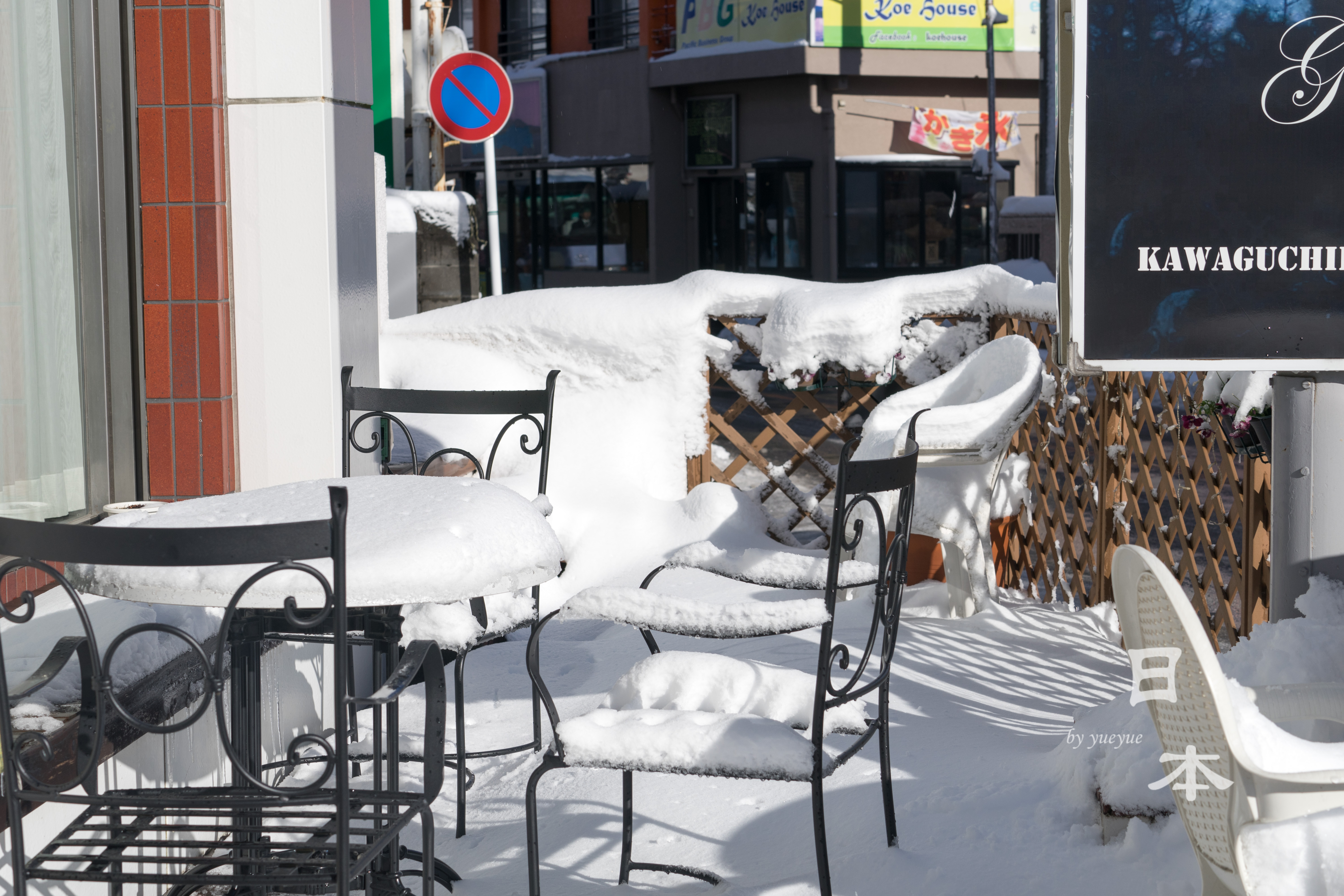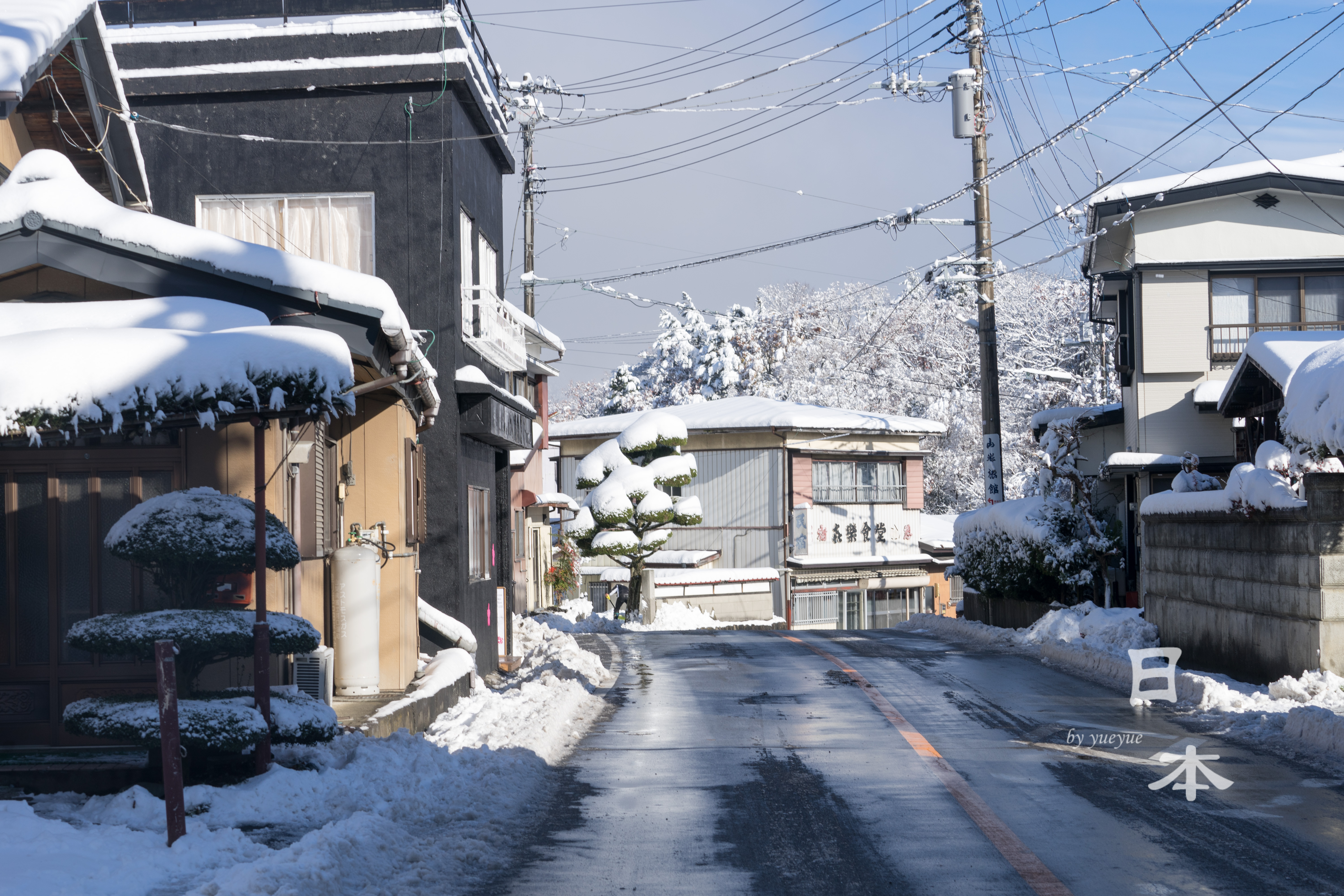 走到附近的一个八王子神社,雪又下了起来,然后拍了下面一张照片,高ios快快门,简直像童话世界有没有。。