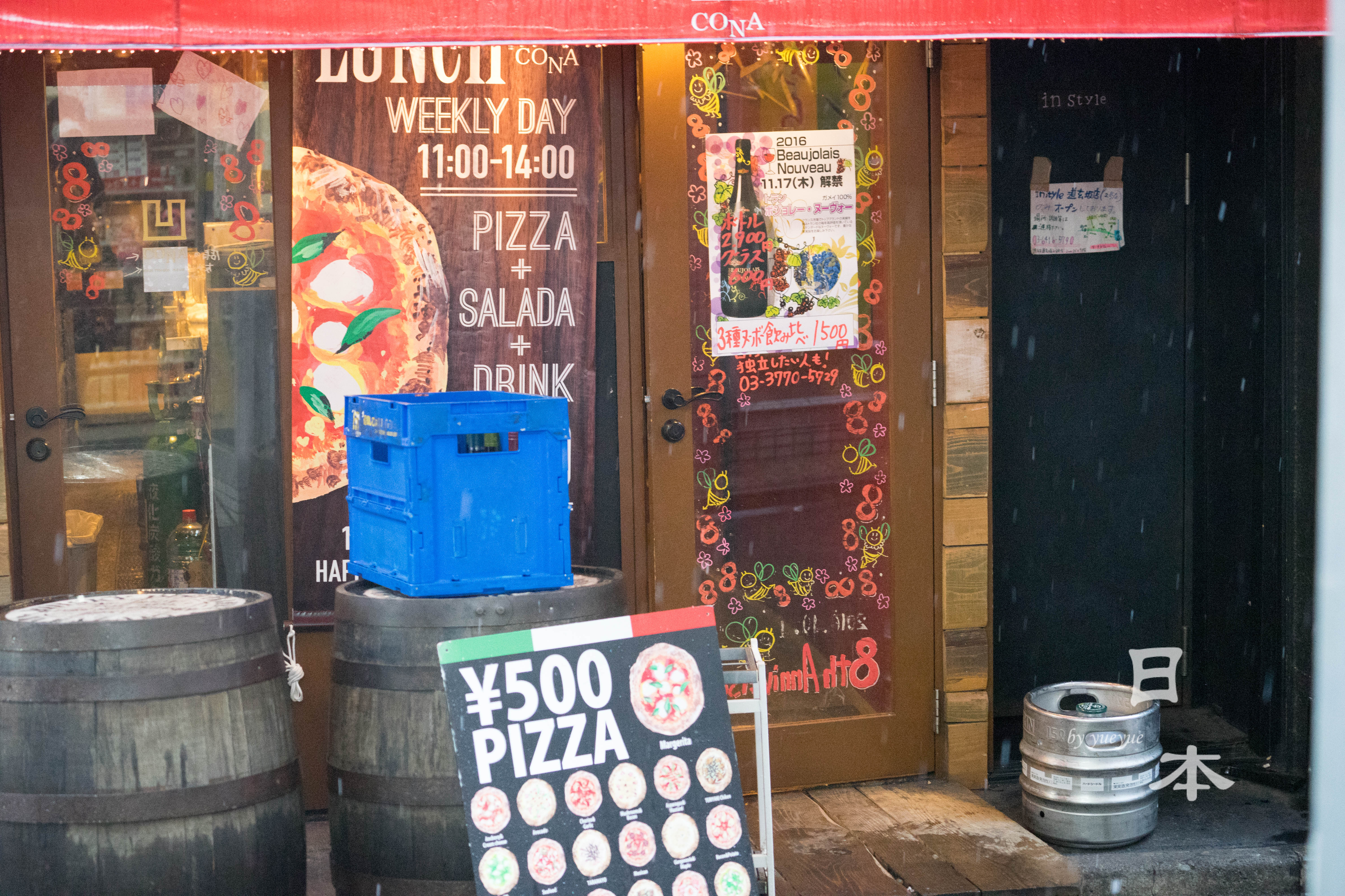 pizza 酒吧推荐指数:啊...我居然忘了店的名字..这家酒吧就在涩谷全向十字路口附近。晚上的时候路过,里面很热闹,水泄不通人声鼎沸,根本没法挤进去,气氛感觉要high到爆了。于是特地白天去了一次,一杯梅子酒+pissa +配菜500日元..这个价格简直是超值了...