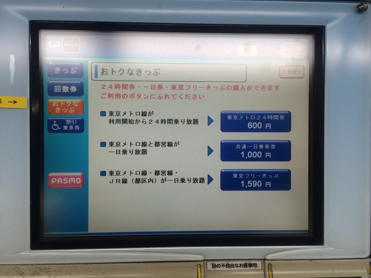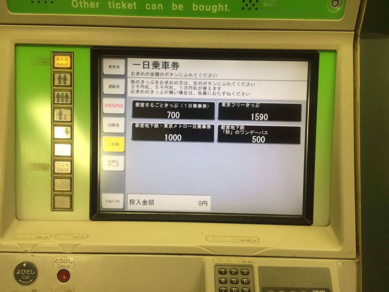 都营地铁的出站口也有都营地铁的售票机,都营地铁是700日元,同样也售东京,都营地铁一日券1000日元