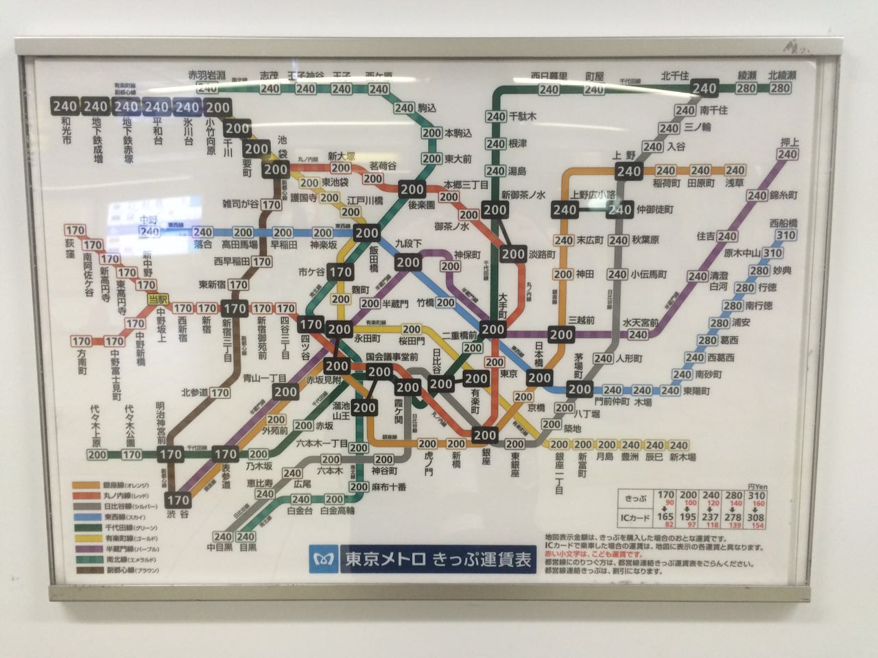 众所周知日本的交通费是贵地令人发指,所以一般不会选择出租车,一般都是选择四通八达的地铁,东京目前有两家地铁公司同时运营不同线路,分别为东京Metro和都营地铁,同时还有国营的JR线,个人觉得JR线会比较少坐到,有时候去到比较远的地方例如横滨的时候会坐到。而东京地铁和都营地铁都分别由售卖地铁日一卷,东京地铁一日券600日元,都营地铁一日券700日元,还有两种地铁都可以做的1000日元一日券,在地铁站有自动售票机可以购买。据说还可以在机场和淘宝可以购买1500日元的三日通票,东京地铁和都营地铁都可以做。我基本买的是东京地铁一日卷,基本要去的地方都可以坐到。