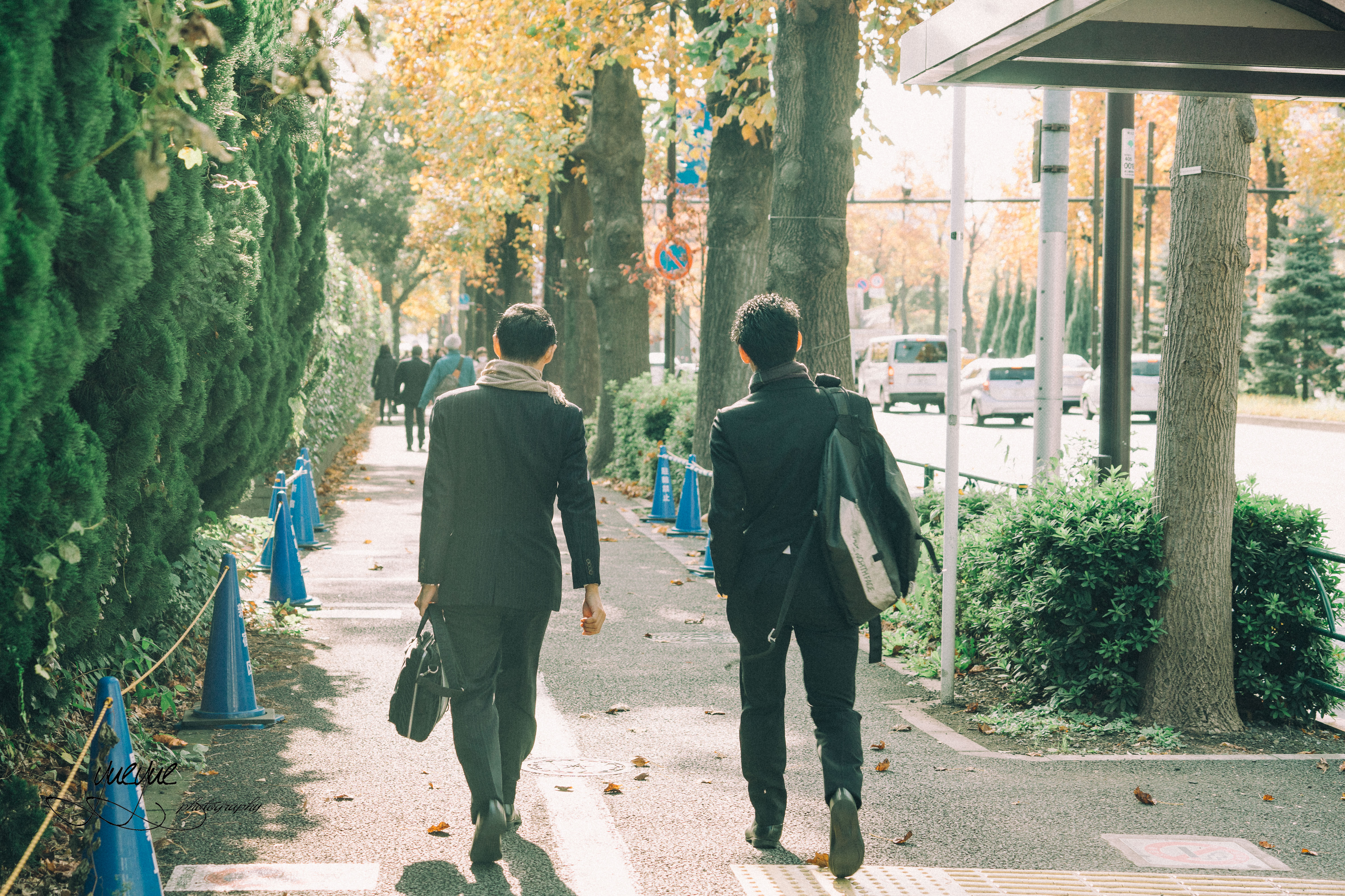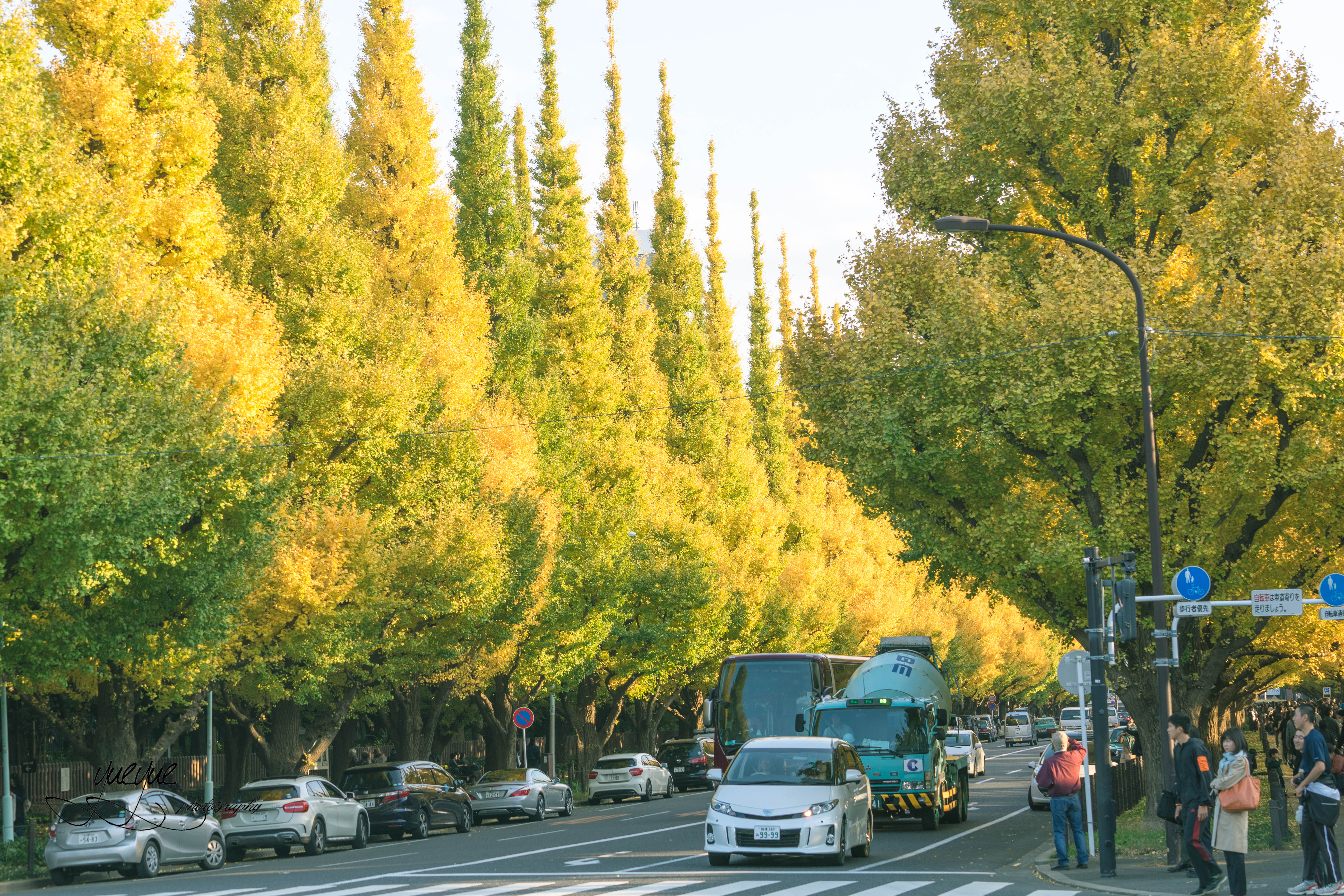 似乎特别执着与寻找枫叶银杏,整天背着脚架相机镜头在街上晃悠,想想也是蛮拼的.. 民宿的老板和我说外苑前的银杏大道很好看,于是坐了地铁到四谷站下来,开始随意地走走逛逛。感觉日本的秋天很美好,.感觉生活在这里,感觉随便哪里都像一幅画。我想到了动画片《秒速五厘米》,怪怪不得日本的动画片着么唯美。