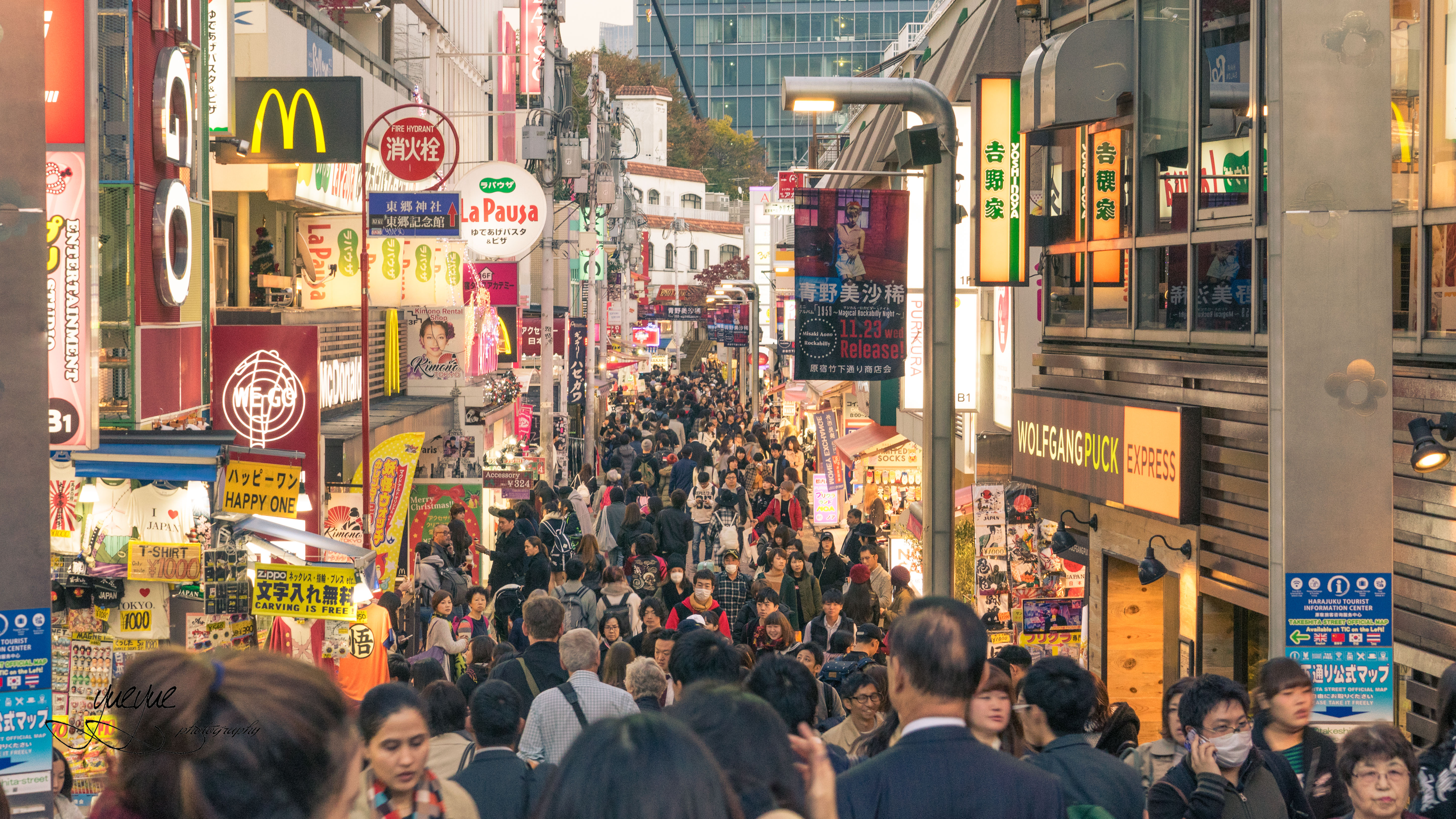 竹下通交通tips:从JR原宿站 竹下口出站,步行约3分钟很快天就黑了,于是直奔竹下通去看人人人,因为据说去竹下通就是看人的。。先来一张人人人人的照片...