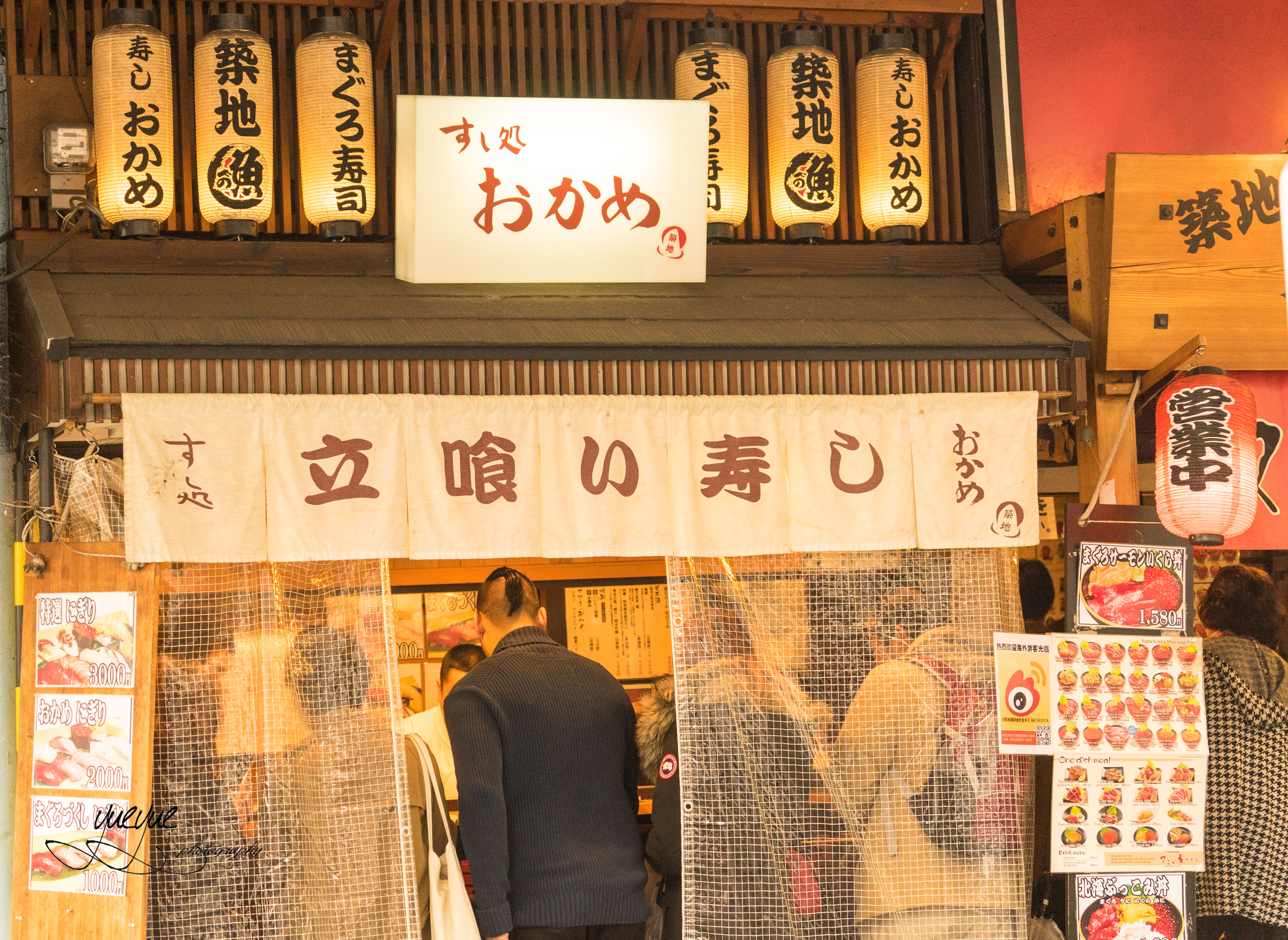 因为时间比较充裕,于是打算好好体验一下东京人的生活,筑地市场据说是世界上最大的鱼市之一,在LP上看了攻略,据说东京人经常早上都会去筑地市场吃寿司。于是大早上的我就来啦。。刚进来就看到一个立食寿司,顾名思义,就是站着吃的寿司,老板一边做,顾客就站着一边看老板做一边吃,还是蛮有趣的..交通tips:地铁大江户线到筑地市场站下,出口走5分钟