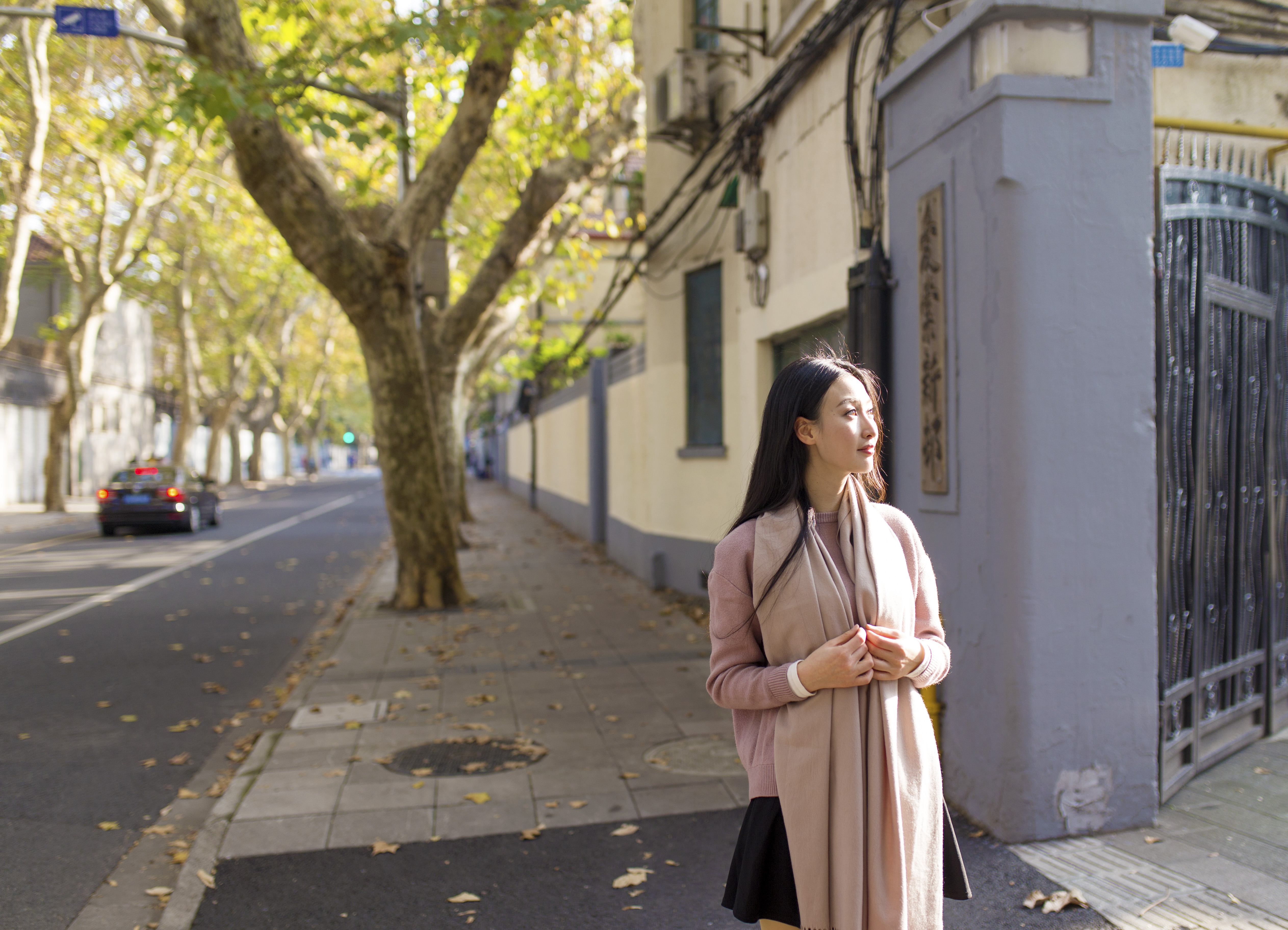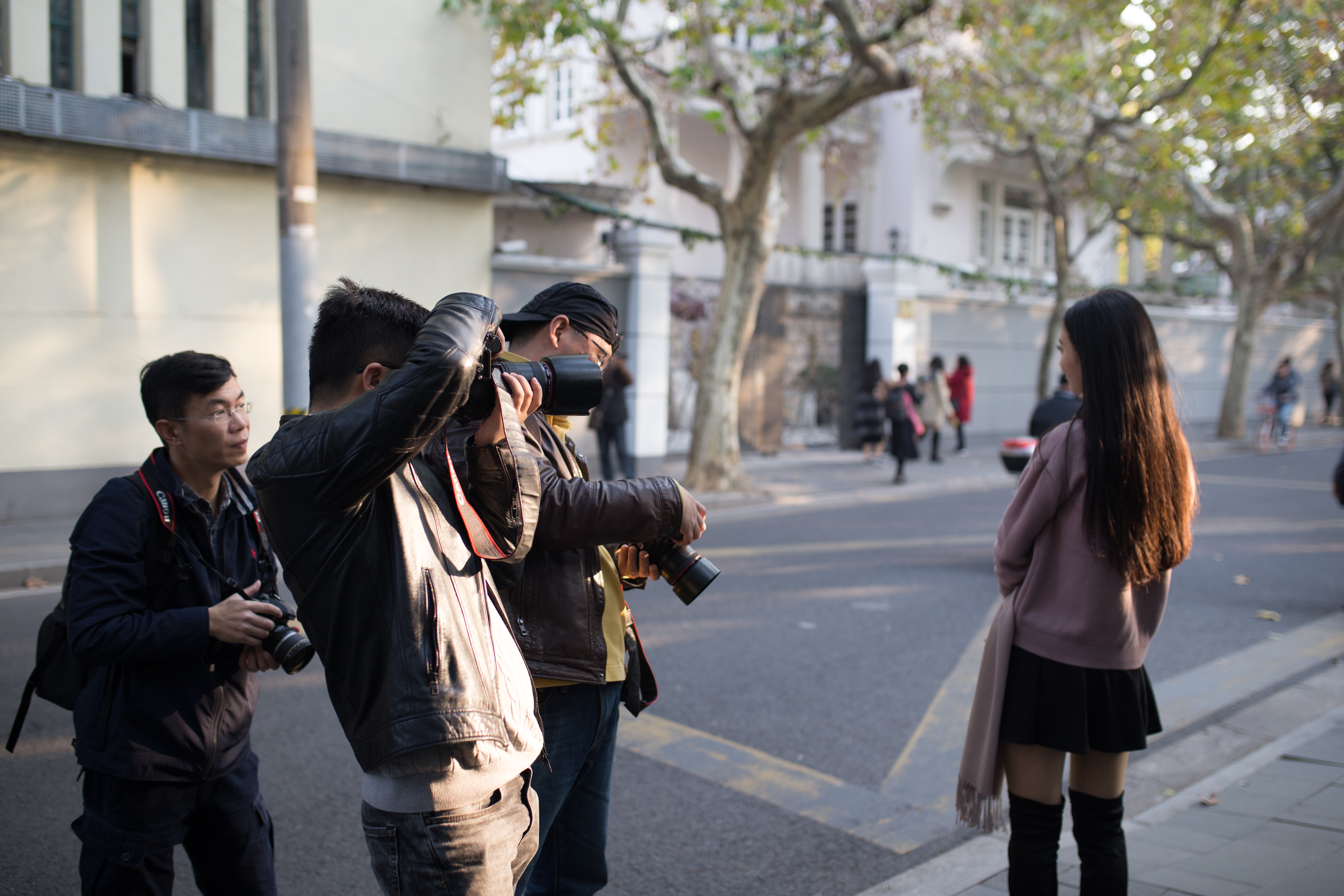 余庆路上两边的行道树、白色的墙面,都成为了各位老师的绝佳拍摄场景