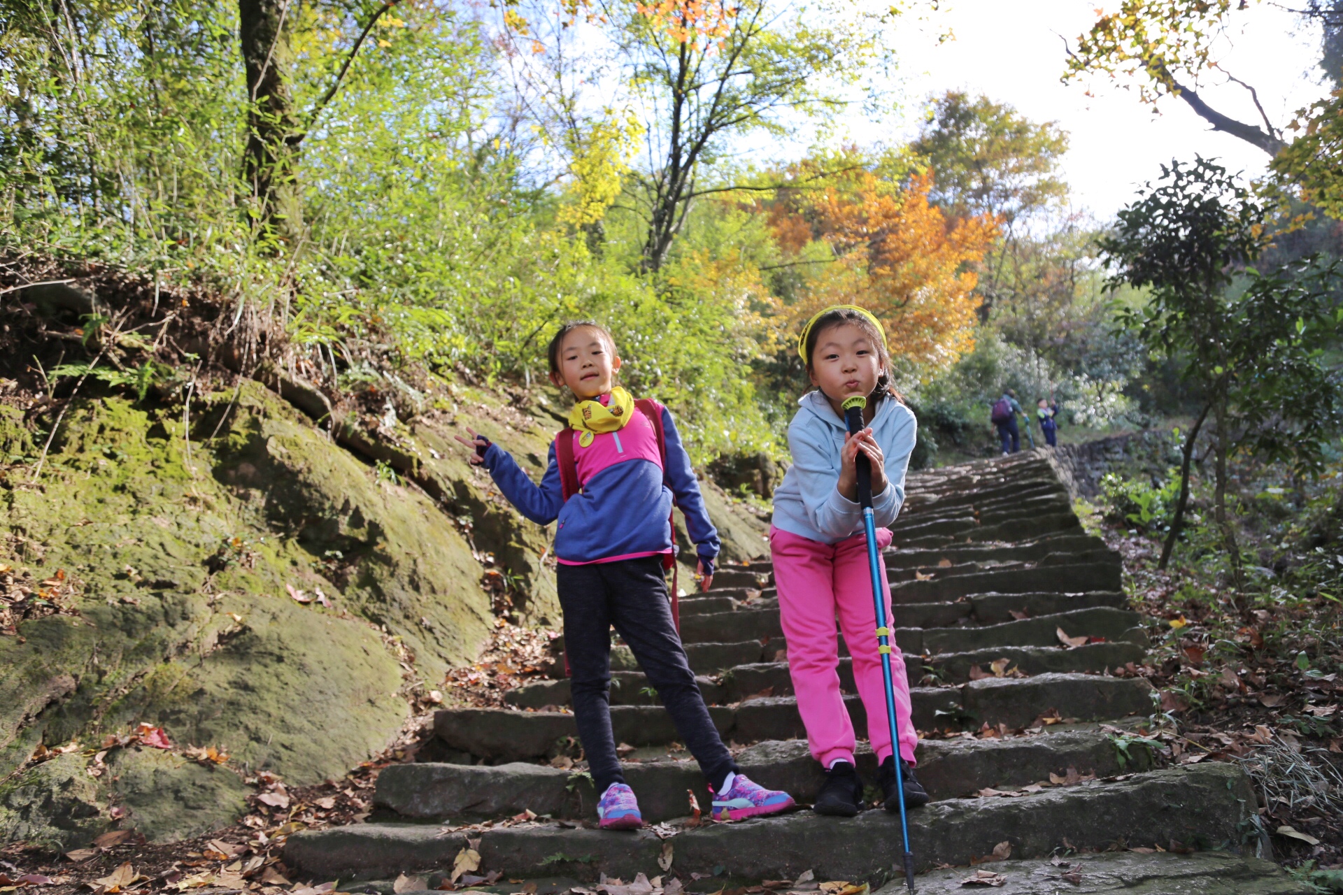 配上这登山杖,我们是不是特专业