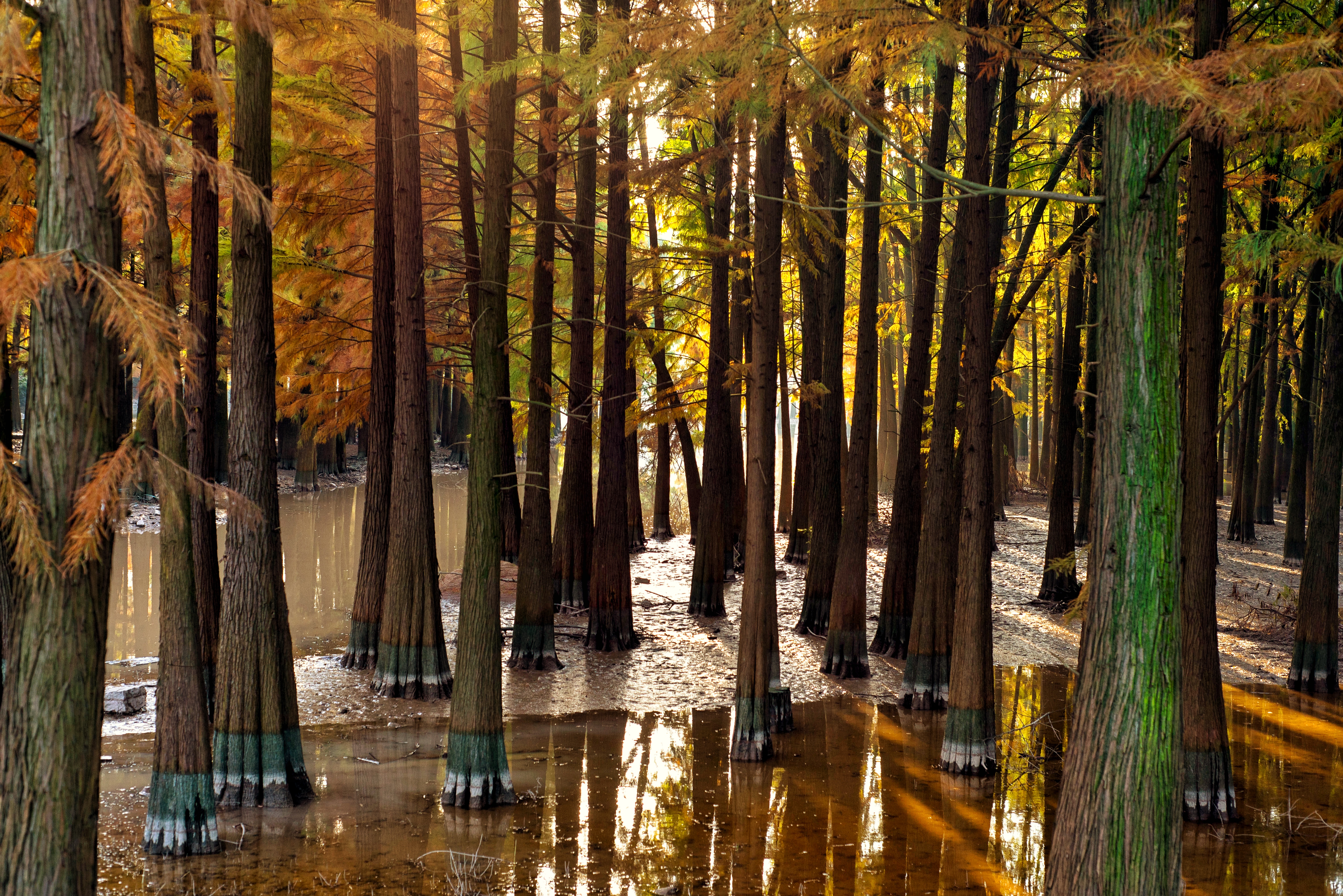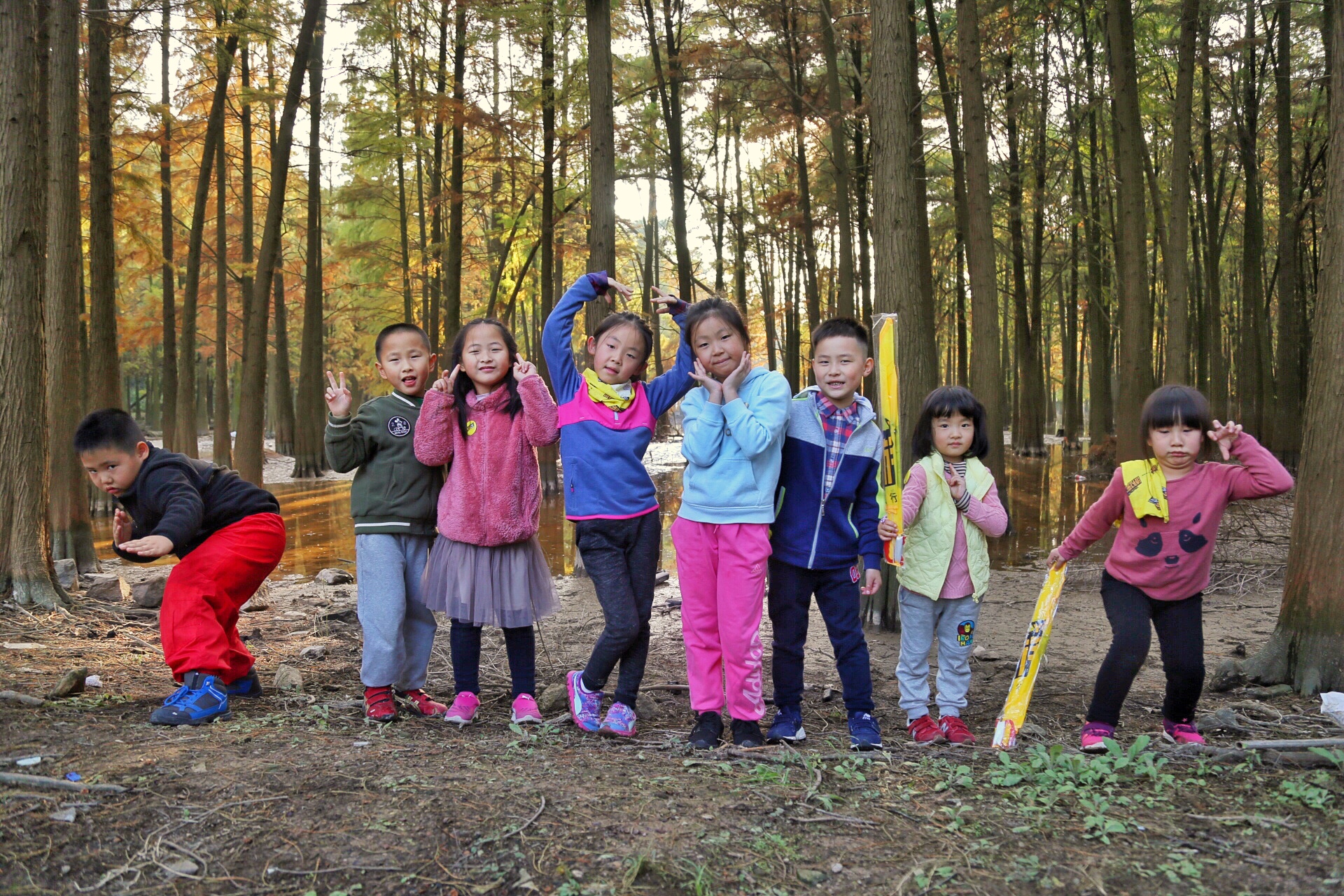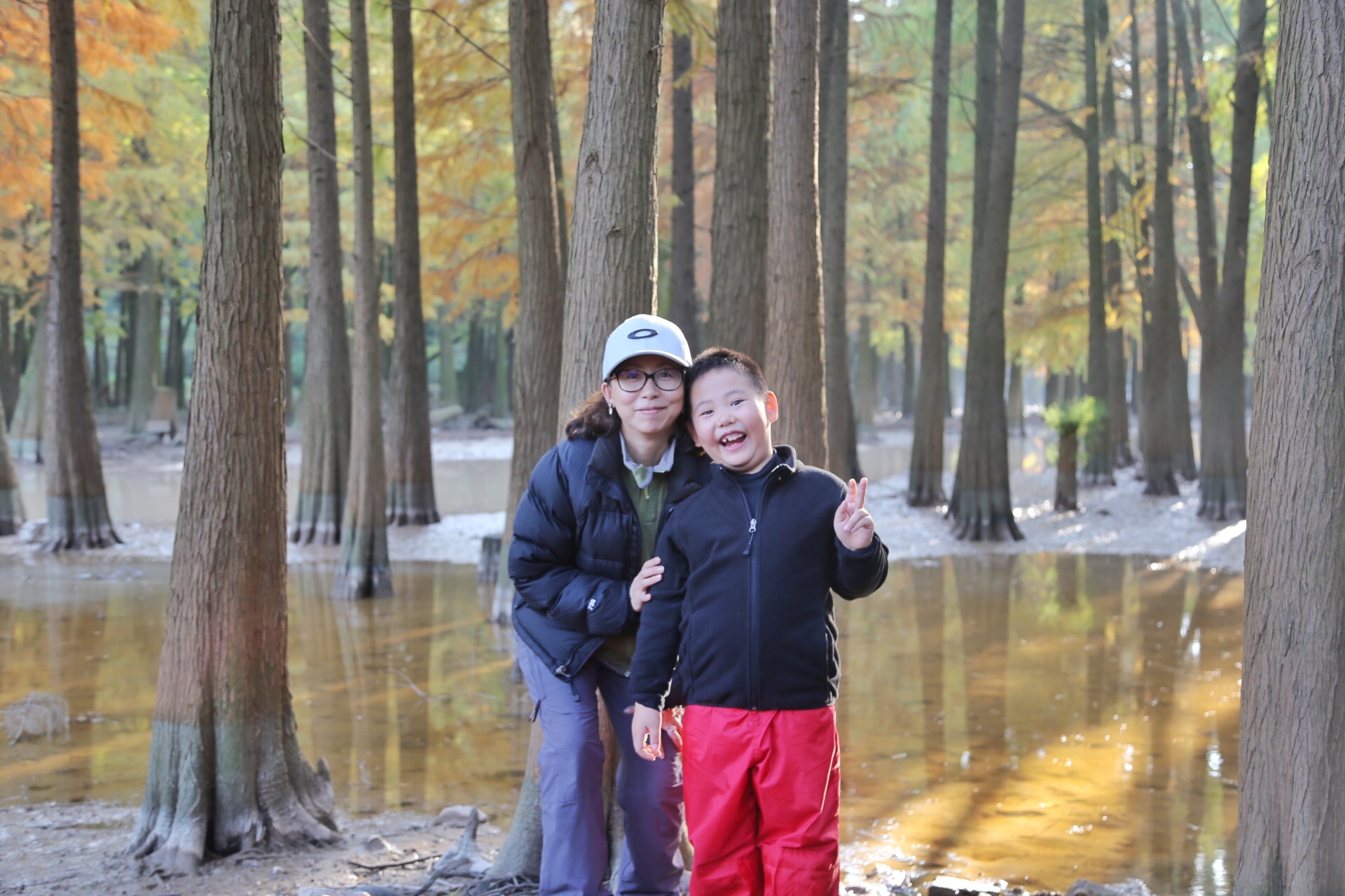 石井水库一路风景优美,我们打打闹闹就到了这块池杉迷境。