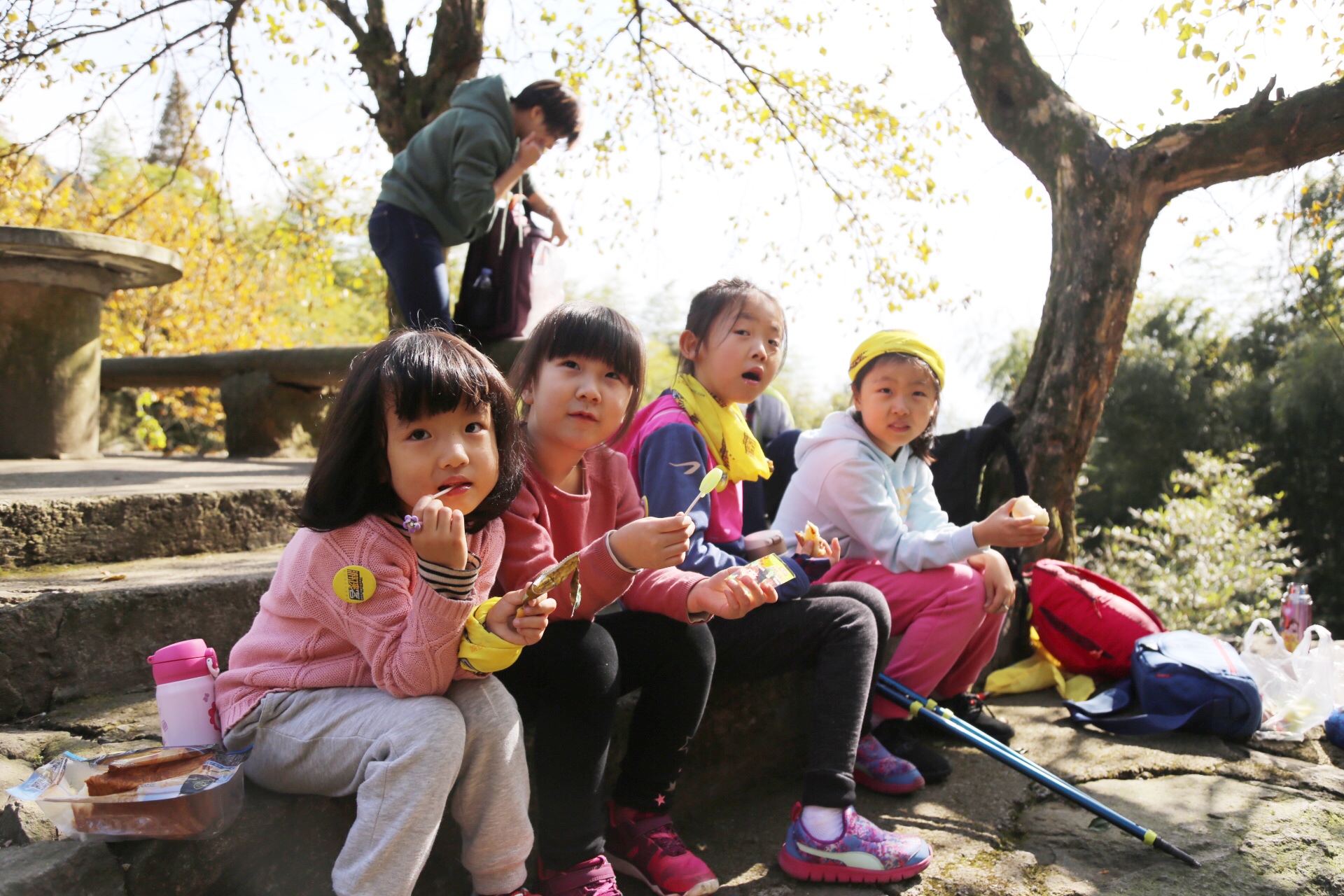 终于到达我们中午的休息地,混熟的小伙伴们,一起把伙食拿出来,互相分享。
