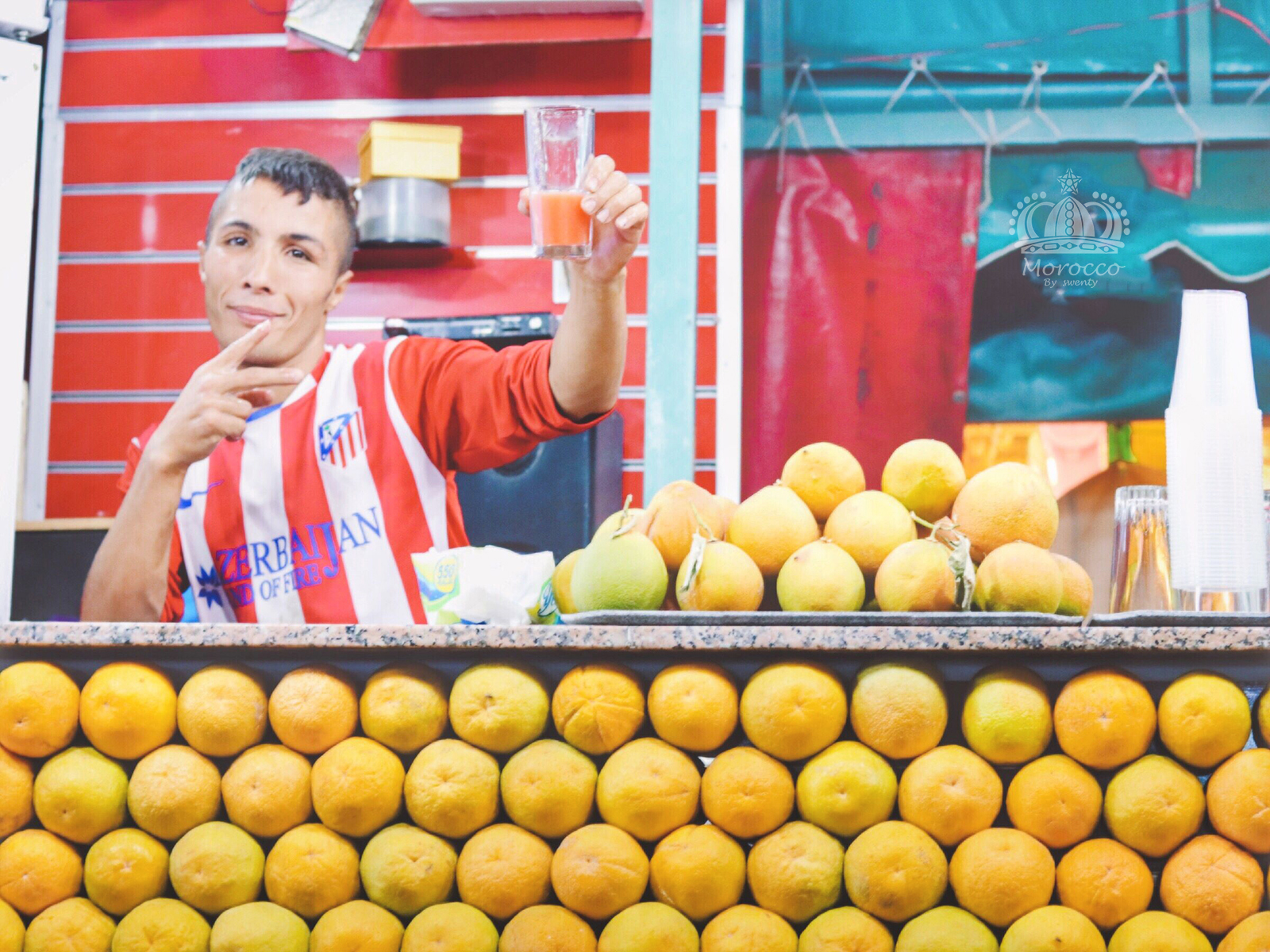 广场上至少有50家几乎一模一样的橙汁摊。摩洛哥盛产世界上最好的橙子和最美味的橙汁。去德吉玛一定要喝的橙汁啊!!4迪拉姆一杯,虽然加了冰和水,味道没有那么浓郁,但确实是我们此行最便宜的橙汁了;