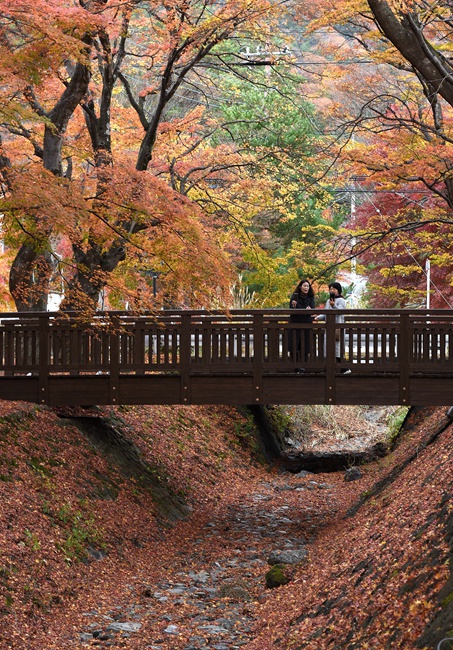 这个景点并不在我们的拍摄目录中,是领队临时加的。阴天,在河口湖拍不到富士山,就绕着湖找到了这个赏枫步道。尽管始终没有阳光配合,但拍摄效果之好还是出乎我的意料。