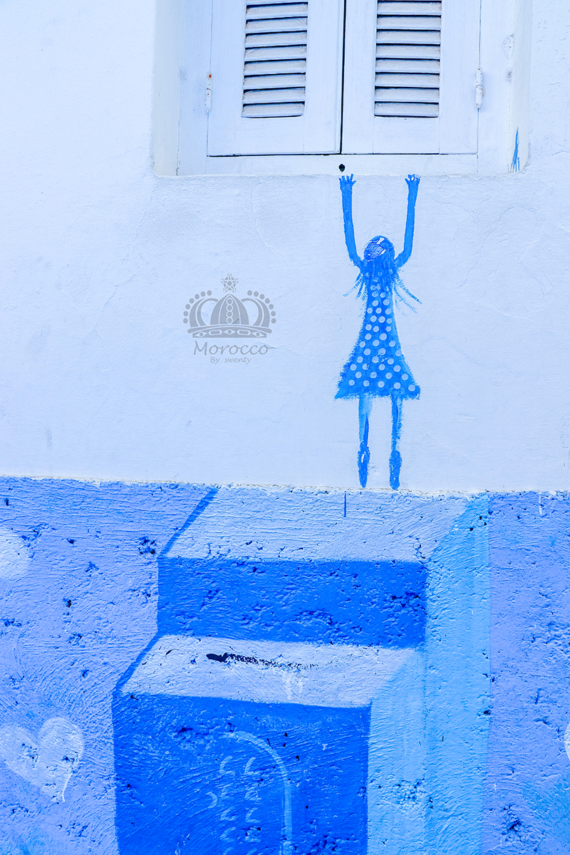 艾西拉(Assilah) 坐落于摩洛哥西北部的大西洋沿岸上;是个北非的海滨小镇,受地中海文化的影响,整个城是用深深浅浅不同色调的蓝色粉刷出来的,像面包一样鼓鼓的土房子曲曲折折地连在一起,蓝色的围墙、蓝色的阶梯、蓝色的大门、蓝色的窄巷,小孩在窄巷里赶着毛驴运送煤气罐,拐角处,一个男人用一筒淡蓝的漆粉刷他的店,山泉叮咚,朴实纯美得就像一幅画。因为临海,空气中似乎闻得到咸咸的大海的气息。