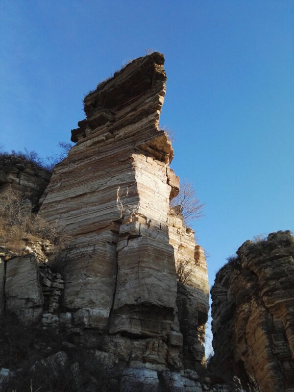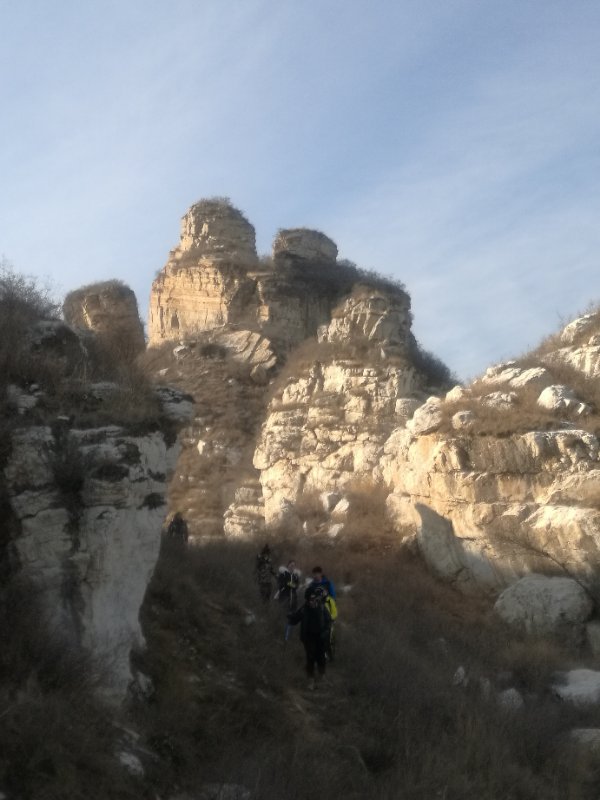 下山途中见到一些断崖的岩石,独自竖立在夕阳下。
