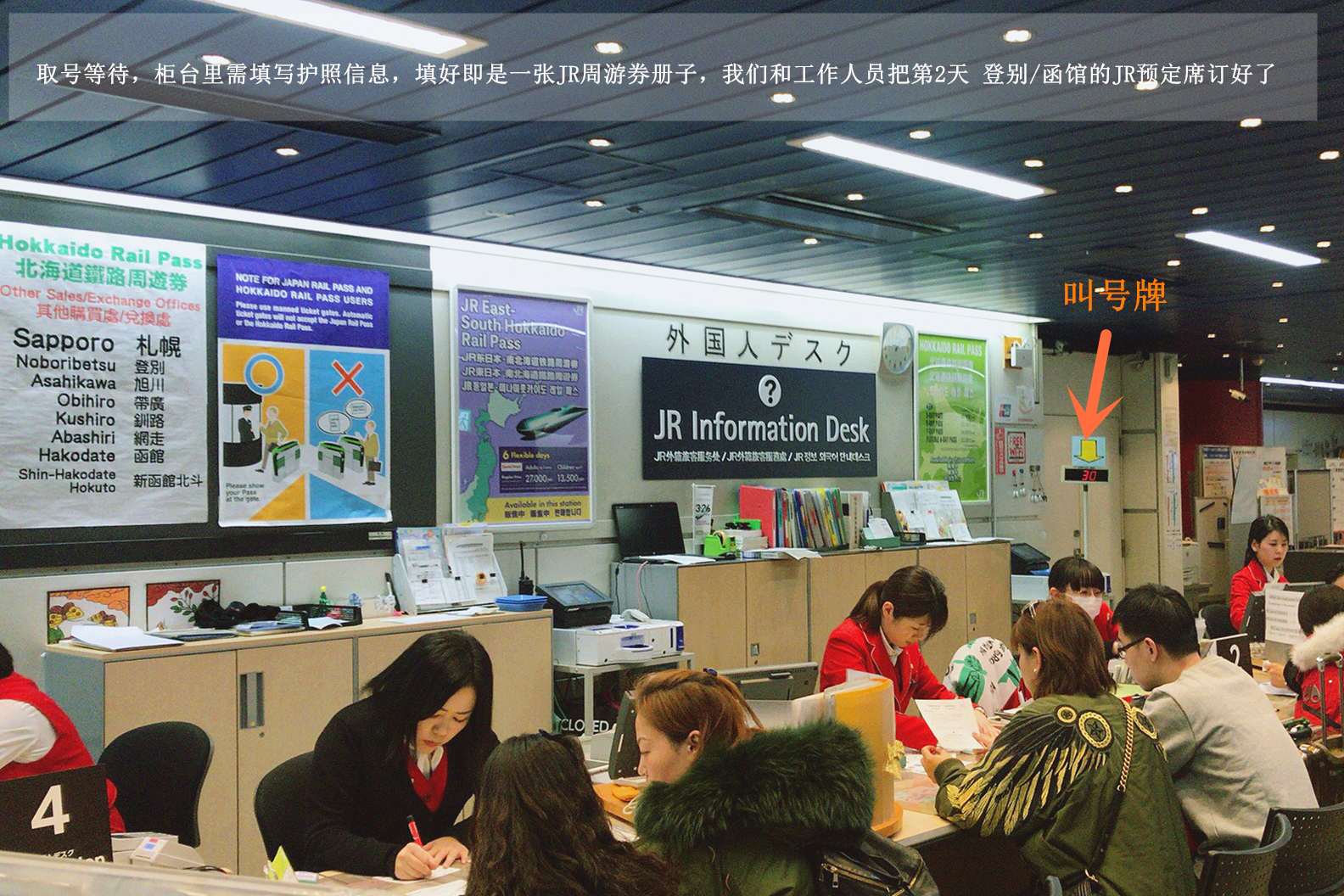 A:提前买!在某宝上的旅行社付款,提供护照姓名等信息给店家,对方将预约“票单”邮寄过来,去日本之前带着,到札幌机场国际航站楼,笔直走国内下电梯,找“JR外籍旅客服务处”(营业时间8:30-19:00)换真正的JR七日周游券,后面上车只需要出示这个小册子就可以上车。