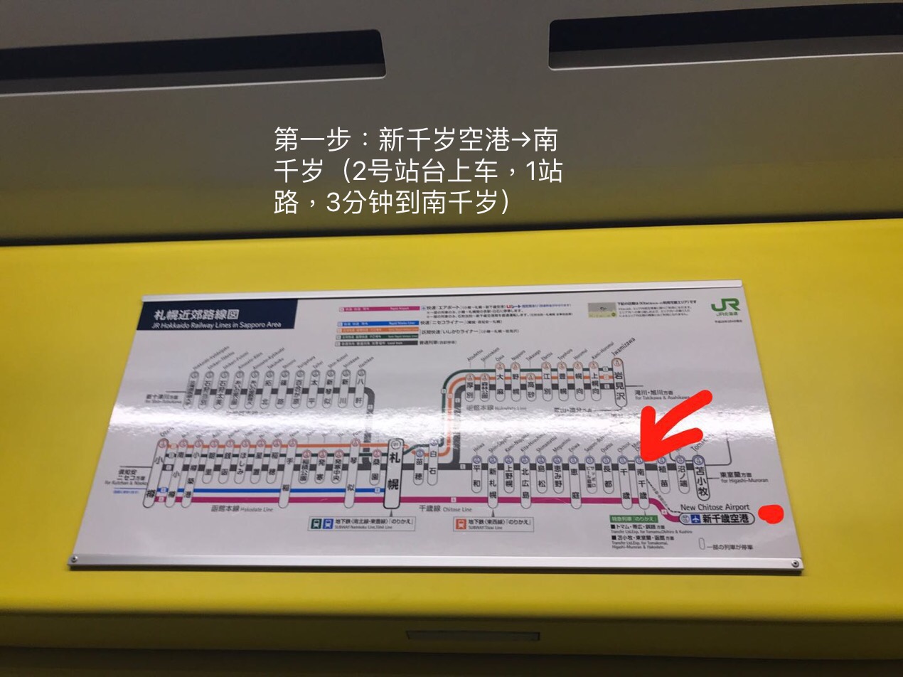 札幌→札幌新千歲空港(提前3小时到机场,车费1080日元,车程40分钟-1小时,车票在自助柜台可买)