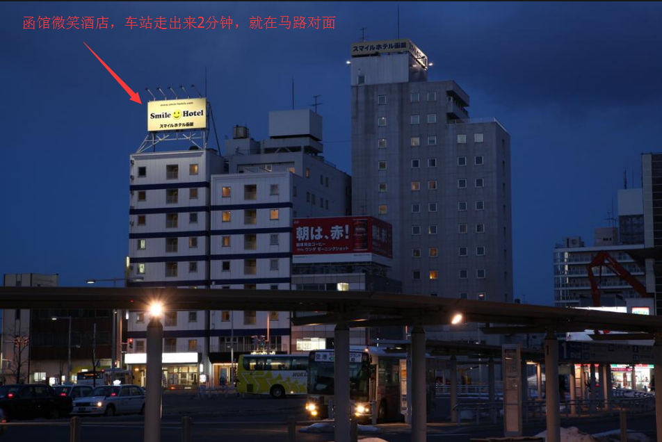 2)函馆微笑酒店:人均¥200-300/晚,函馆车站对面步行2分钟,房间内空间不大,但位置和卫生蛮好的。
