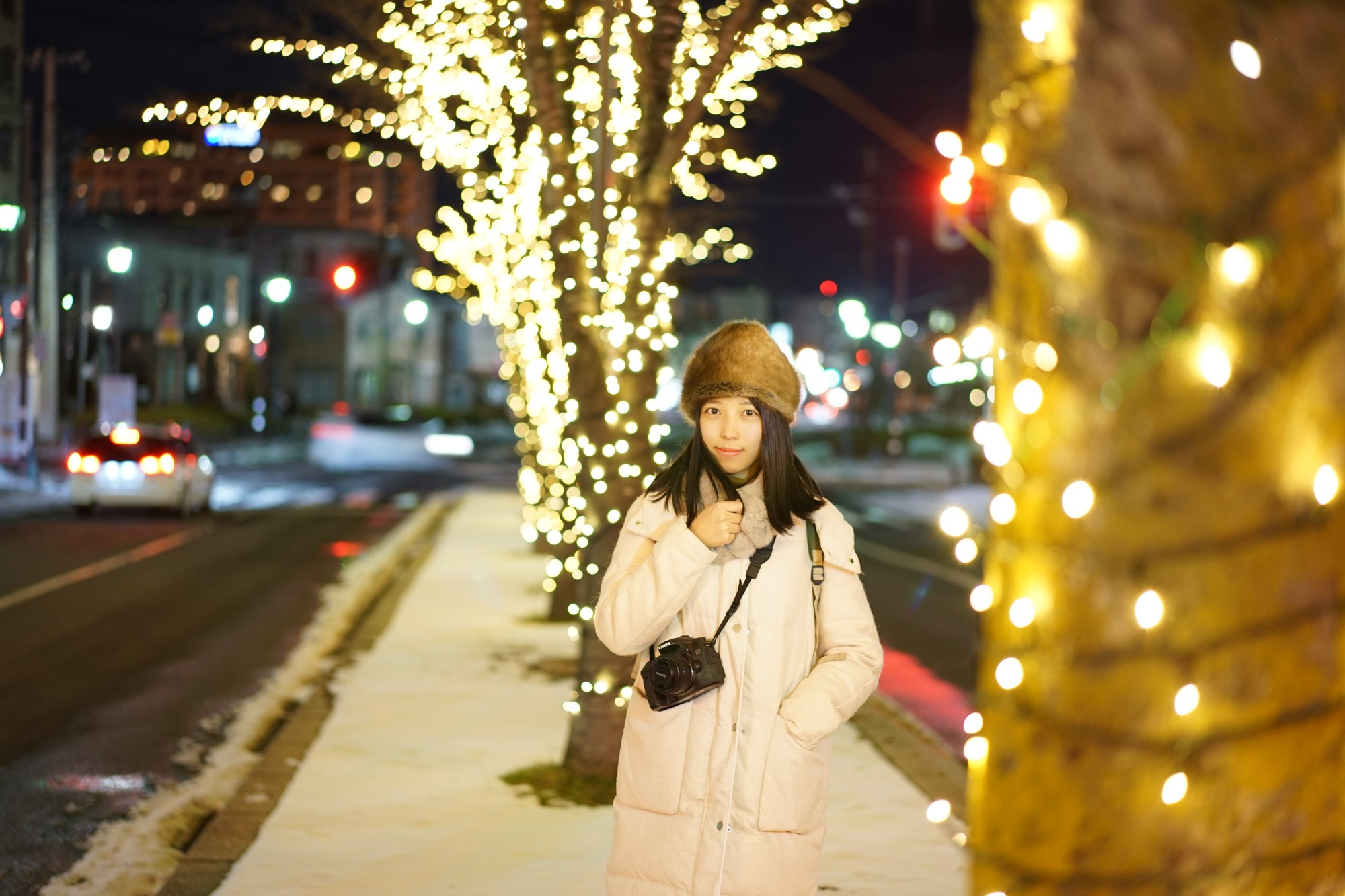 冬季,北海道街道,天空会随时飘起梦幻白雪... ...