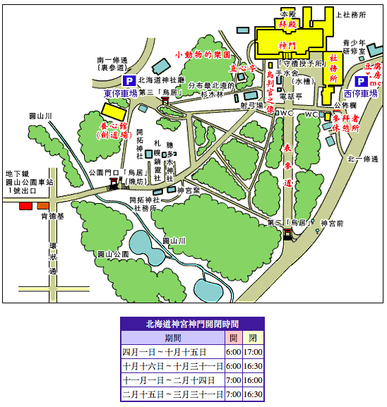 乘搭地铁东西线,在圆山公园站下车,步行约15分钟左右即到