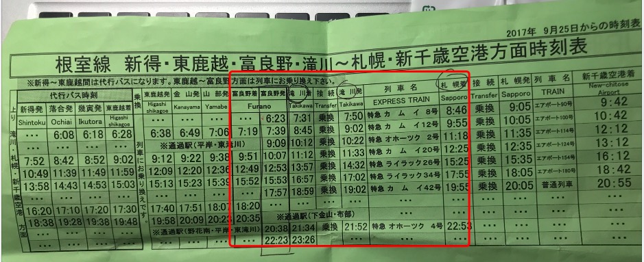 想要了解JR班次时刻表朋友:提前存好北海道时刻表(Time table)存好,查询时刻表(截止2017.12.1-2018.3)