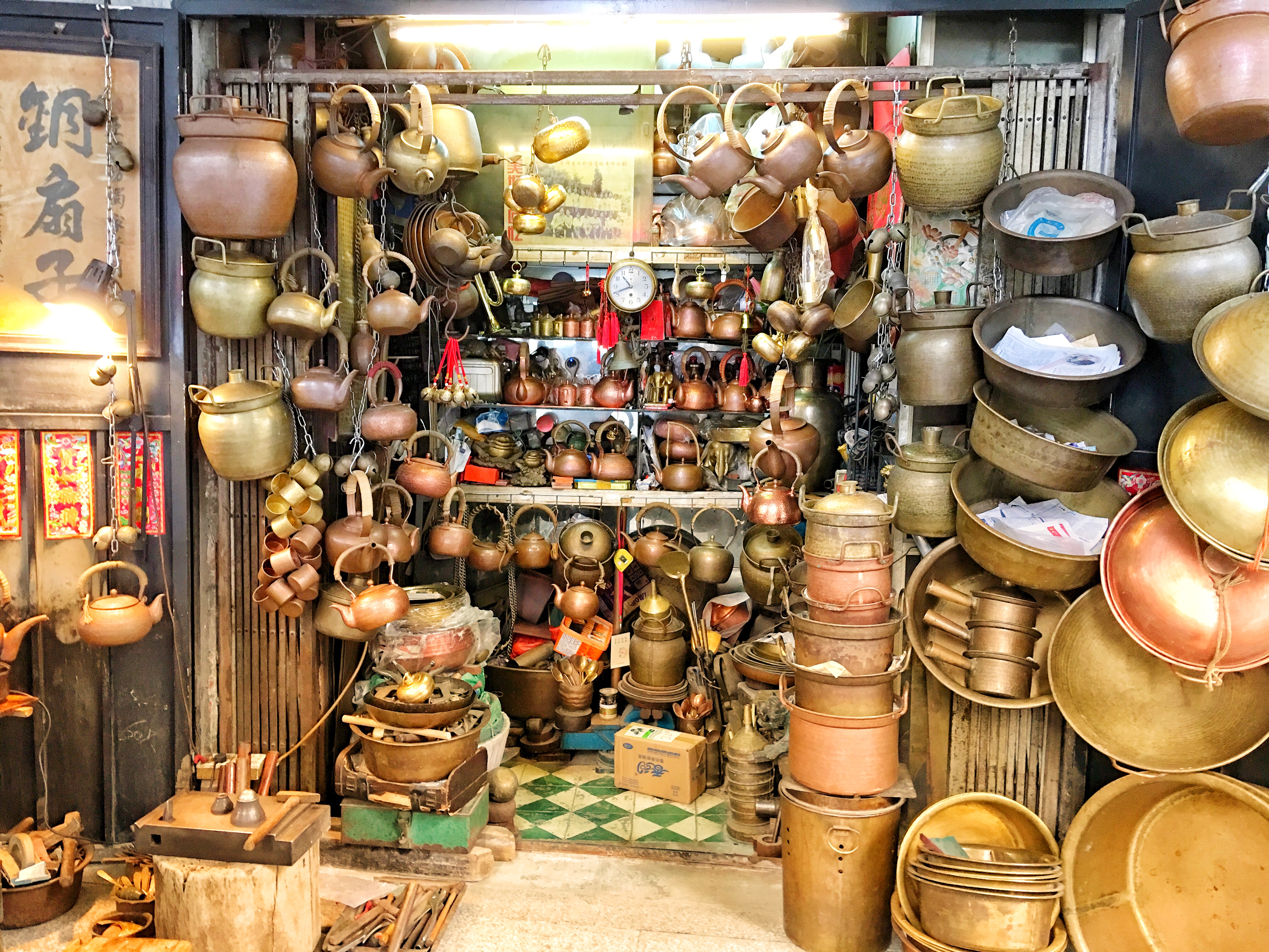 从博物馆出来左转,就遇到了非物质文化遗产-百年打铜铺,上世纪七八十年代,在广州的大街小巷常听到“补铜煲、钛煲”的叫声。恩宁路十多年前就有很传统的铜器店铺,各种手打的铜煲、铜壶、铜盆... ... 不仅可作为手工艺术品欣赏,而且环保、实用。